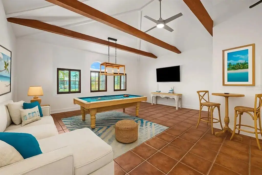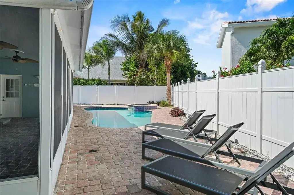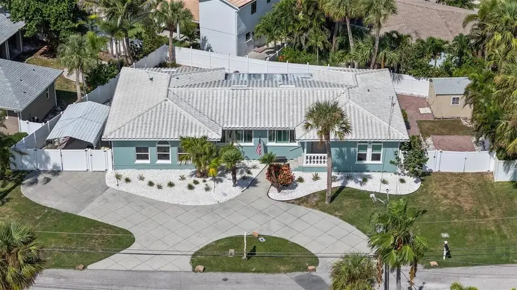 Coastal elegance meets timeless charm in this beautifully updated residence located in the exclusive neighborhood of Carlouel on North Clearwater Beach. This 4-bedroom, 3-bathroom home offers the perfect blend of luxury and livability, nestled on a sprawling 117 x 79.5 fully fenced lot with lush tropical landscaping and gated access on both sides. Step inside to discover a brand-new kitchen with stunning granite countertops, stainless steel appliances, and an oversized island—ideal for entertaining. Gorgeous oak floors, plantation shutters, and thoughtful design details flow throughout the home. The open living spaces extend effortlessly, to a screened-in lanai with a doggie door, overlooking a sparkling pool, hot tub, and an outdoor shower—your own private oasis. Enjoy the convenience of a circular driveway, a carport on one side, and additional parking with a shed on the other. Located just steps from the private beach access reserved for Carlouel residents, this home is perfectly situated in a golf-cart friendly community with unmatched privacy and prestige. A rare opportunity to own a slice of paradise in one of Clearwater Beach's most coveted enclaves.