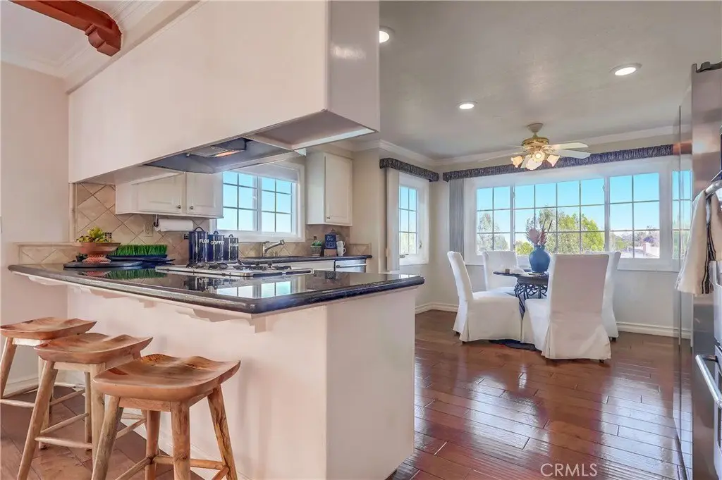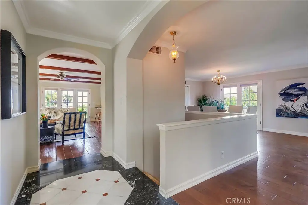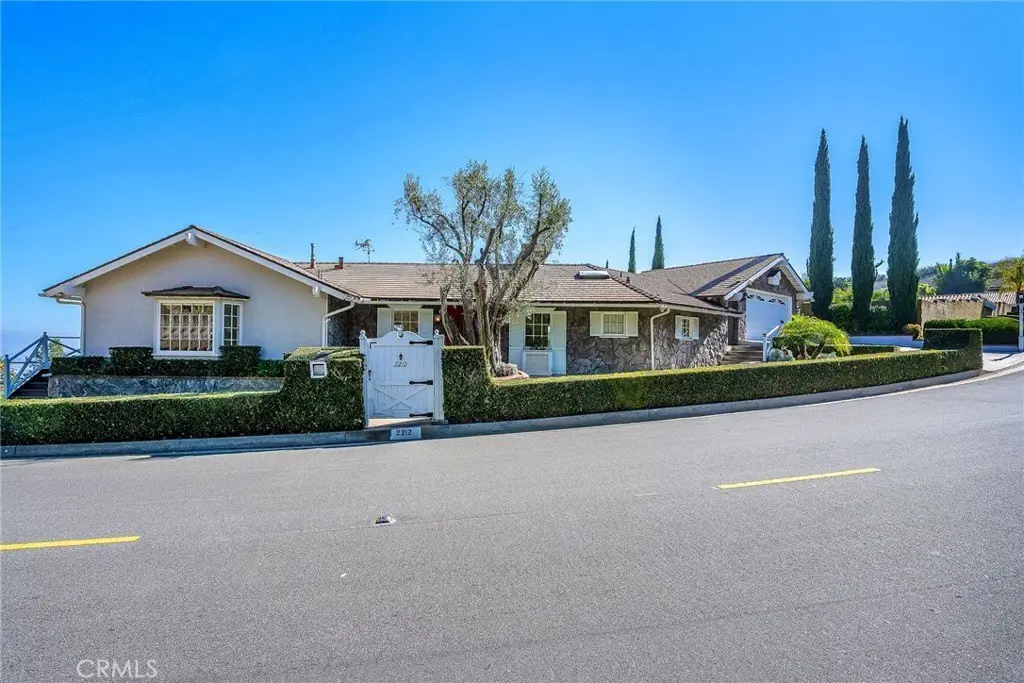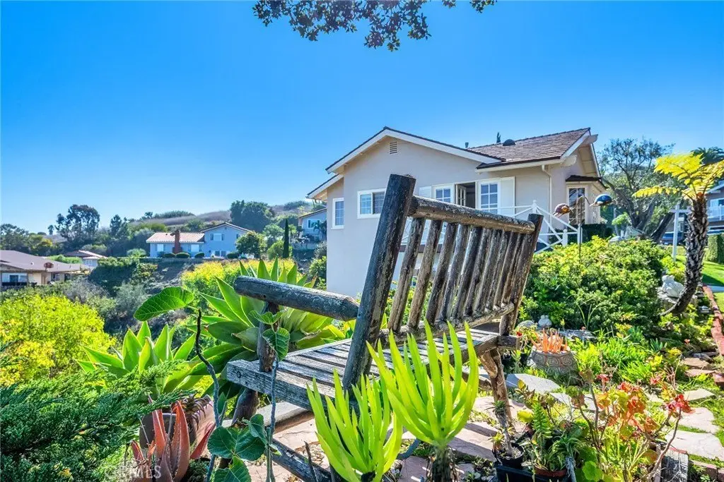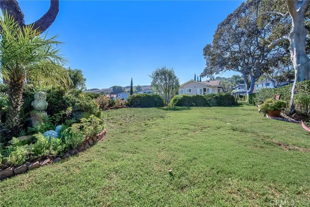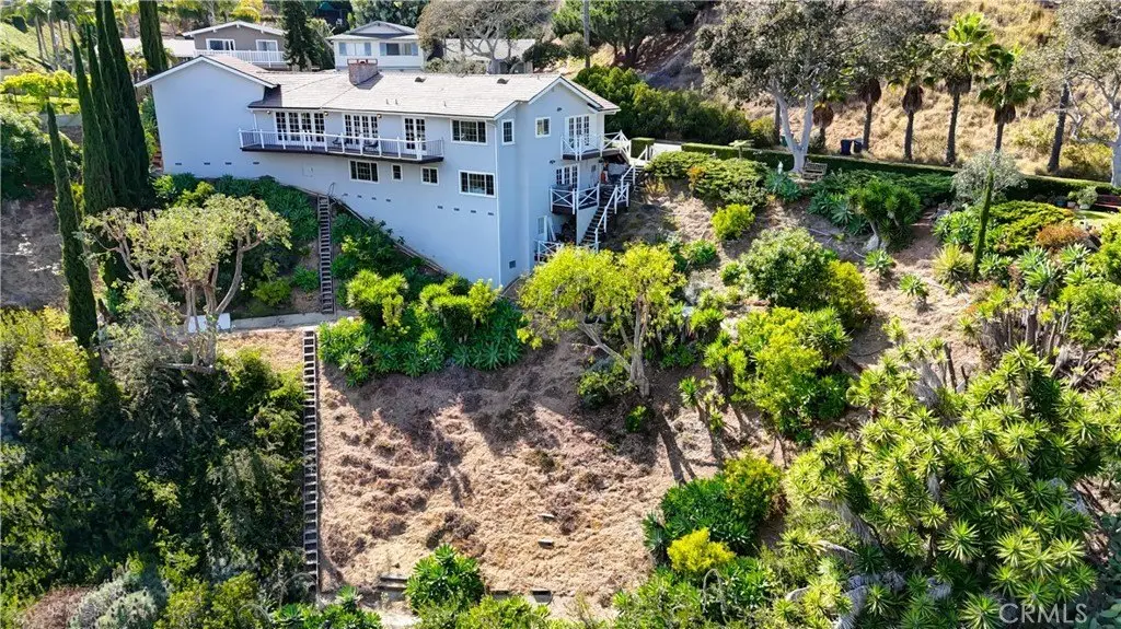 Experience breathtaking harbor and ocean views from nearly every room of this beautifully remodeled home, nestled at the southernmost point of LA County on the Palos Verdes Peninsula. Tucked away at the end of a quiet canyon, this property offers easy freeway access and is conveniently located just 25-30 minutes from both Long Beach and Los Angeles Airports. The home is thoughtfully designed with high-quality finishes, including numerous French doors that maximize the stunning views, elegant crown moldings, distressed hardwood floors, and plush carpeting in the bedrooms. The grand marble-inlaid entry leads seamlessly into the formal living room, dining room, and family room, boasting open-beamed ceilings and a wet bar. The gourmet kitchen is both stylish and functional, featuring granite countertops, a large peninsula with bar seating, and a sun-drenched breakfast nook where you can enjoy views from every angle. A beautiful bleached pine frame surrounds the brick fireplace in the living room, adding warmth and charm. This home offers TWO primary suites, each with panoramic views—one on each level—along with two additional view bedrooms, with access to private deck overlooking the terraced canyon. All four bathrooms have been tastefully remodeled, showcasing granite and tumbled marble accents. The expansive 19,543 sq ft lot is a gardener’s dream, with lush landscaping, an array of fruit trees, and vibrant vegetation. A spacious, flat grassy area off the kitchen and family room provides the perfect spot for family gatherings, all while soaking in the spectacular canyon, harbor, ocean, mountain, and city light views. Located within the renowned Palos Verdes Peninsula School District and just minutes from fine dining, shopping, hiking trails, Terranea Resort, and world-class golf courses, this peaceful, private retreat is a true gem. Meticulously maintained and move-in ready, this home exudes serenity and luxury.