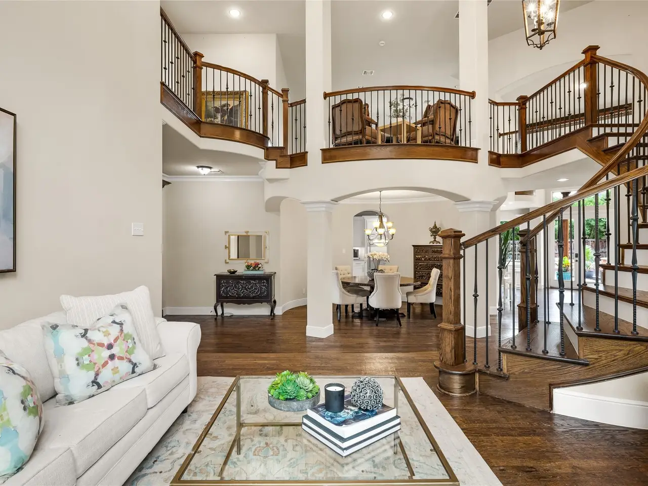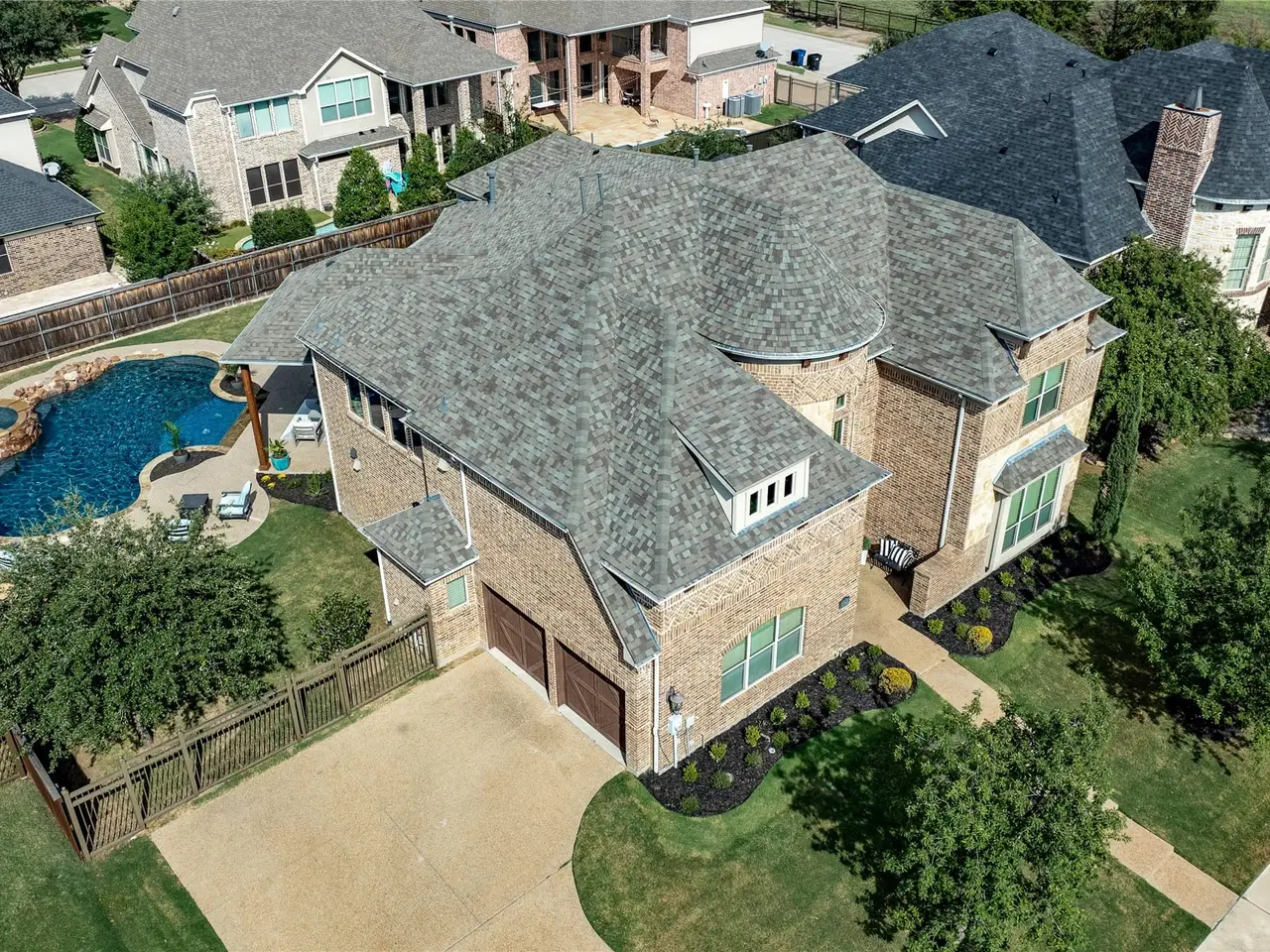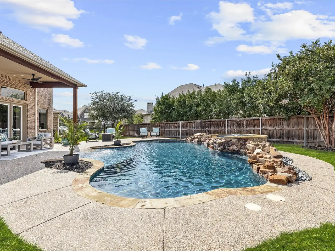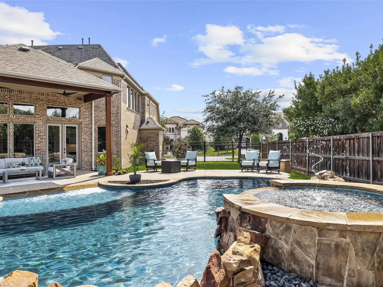 Discover timeless elegance in this stunning 5-bedroom custom home nestled within the exclusive, 24-hour guard-gated community of the Hills of Kingwood. With over 4,800 square feet of beautifully curated living space, every detail has been designed for both effortless entertaining and the warmth of everyday living. Step inside to soaring ceilings and walls of windows that bathe the home in natural light, creating a bright, inviting atmosphere from the moment you enter. The chefs kitchen is a showpiece, featuring a 6-burner gas range, side-by-side large-capacity refrigerator and freezer, and a striking quartz island thats as functional as it is beautiful the perfect gathering spot for family and friends. Hand-scraped hardwoods flow gracefully through the main level, adding warmth and character throughout. The first-floor primary suite is a serene retreat, offering a spa-like bath with dual vanities, a stand-alone soaking tub, and a spacious walk-in closet. A secondary bedroom and full bath downstairs provide flexibility for guests, a nursery, or a private home office. Upstairs, youll find three additional bedrooms, a game room, and a dedicated media room spaces made for connection, relaxation, and memory-making. Step outside to experience outdoor living at its most enchanting. A custom, heated lagoon-style pool with spa, waterfall, swim jets, and beach entry creates a resort-worthy oasis right in your backyard. Its the perfect backdrop for peaceful mornings, lively gatherings, or evenings under the stars.Additional features include thicker second-level subflooring for added quiet, a brand-new roof (2025), and thoughtful custom touches carried through every stage of the homes design and construction.Perfectly positioned near The Star, Legacy West, Dallas North Tollway, and Highway 121, this home combines luxury, comfort, and location in a way that feels truly extraordinary.