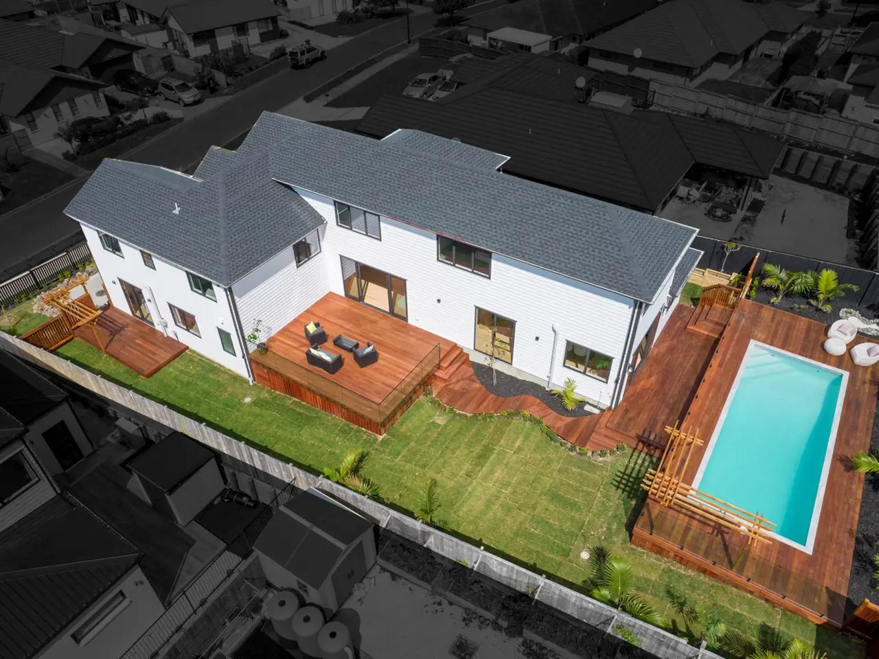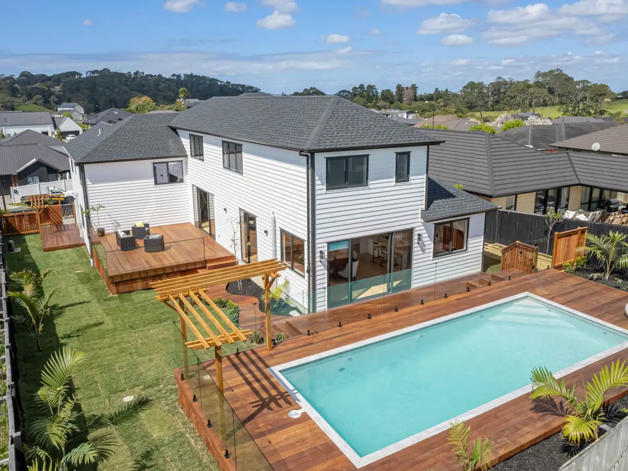 Experience refined family living in this stunning, brand-new, five-bedroom home on a generous 804sqm section in Riverhead. Featuring premium finishes, smart modern features, and a 10-year Master Build Guarantee, it offers comfort and effortless entertaining.The stylish formal lounge flows to a private guest suite with an ensuite, ideal for visitors or teenagers. The sleek designer kitchen includes top-quality appliances and a walk-in pantry, connecting seamlessly to open-plan living with a gas fireplace for warmth and ambiance.Enjoy the sun-soaked timber deck and landscaped backyard, perfect for morning coffees, gatherings, or kids’ play. The north-facing in-ground saltwater pool is ideal for hot days and weekend relaxation.Upstairs, the master retreat boasts a walk-through wardrobe and luxurious ensuite, with three additional bedrooms – including another ensuite – and a stylish family bathroom.Located near parks, riverside walkways, cafés, shops, and the iconic Hallertau Brewery, this home offers convenient, stylish living. Move in now and enjoy poolside bliss all year round.