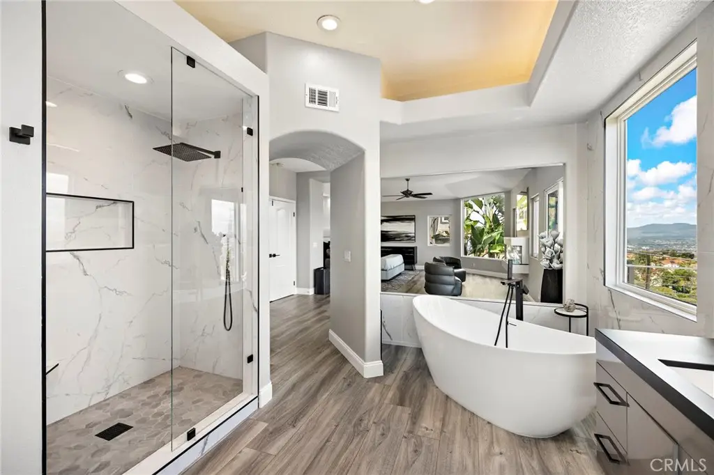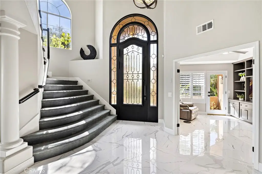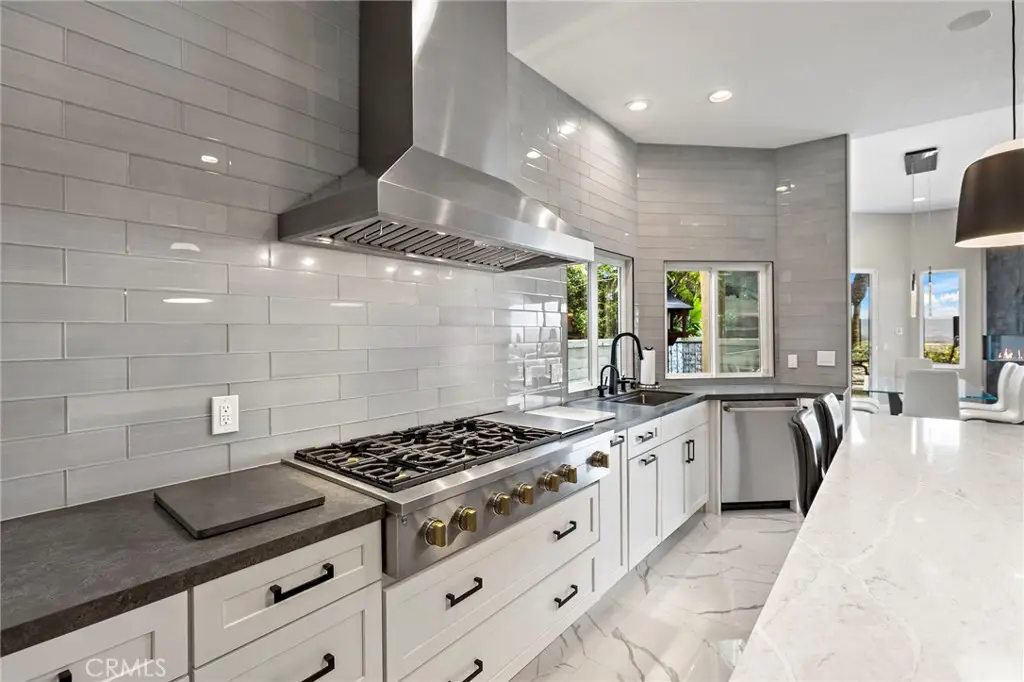 Experience coastal California living at its finest. Welcome to this highly remodeled, state-of-the-art smart home showcasing over $600,000 in high-end upgrades and offering unparalleled 180deg views that stretch from the Pacific Ocean to the mountains and twinkling city lights below. Nestled in one of Laguna Niguel's most prestigious communities, this stunning residence blends modern elegance with effortless indoor-outdoor living. Enter through the massive, custom, wrought iron front door with smart keyless entry, & be greeted by a grand, foyer featuring soaring ceilings, polished porcelain flooring, & a sweeping staircase that immediately sets the tone for the home's elevated design & craftsmanship. Open concept with expansive windows that fill the home with natural light while framing breathtaking panoramic vistas from nearly every room. The chef-inspired kitchen is a true showpiece, boasting a massive waterfall island, custom cabinetry, professional-grade stainless steel appliances, and elegant pendant lighting. Seamlessly connected to the sophisticated dining and living areas, this space invites both relaxation and entertainment. The floor-to-ceiling tiled fireplace adds warmth and contemporary style, while the additional fireplace in the family room/game room provides another cozy gathering spot for family and friends. Upstairs, the luxurious primary suite offers a private retreat like no other, complete with jaw-dropping panoramic views, a sitting area with a modern, linear fireplace, a private balcony, & a spa-like bathroom featuring dual vanities, a soaking tub, & a separate glass-enclosed shower. The home also includes a versatile office/bonus room with built-ins, perfect for a dedicated home office, guest suite, or additional bedroom to fit your lifestyle needs. Step outside to your private outdoor oasis, where coastal breezes and endless views set the tone for relaxation and entertaining. Enjoy multiple lounge areas, a fire pit, custom-built BBQ station, LED-lit spa, and elegant fire bowls--all positioned to capture the incredible ocean & city light views that define this exceptional property. This home has been transformed into a state-of-the-art smart home, allowing you to control temperature, lighting, sound, door entry, and security with the touch of a button, offering both convenience and peace of mind. Located just minutes from world-class beaches, dining, shopping, & award-winning schools.