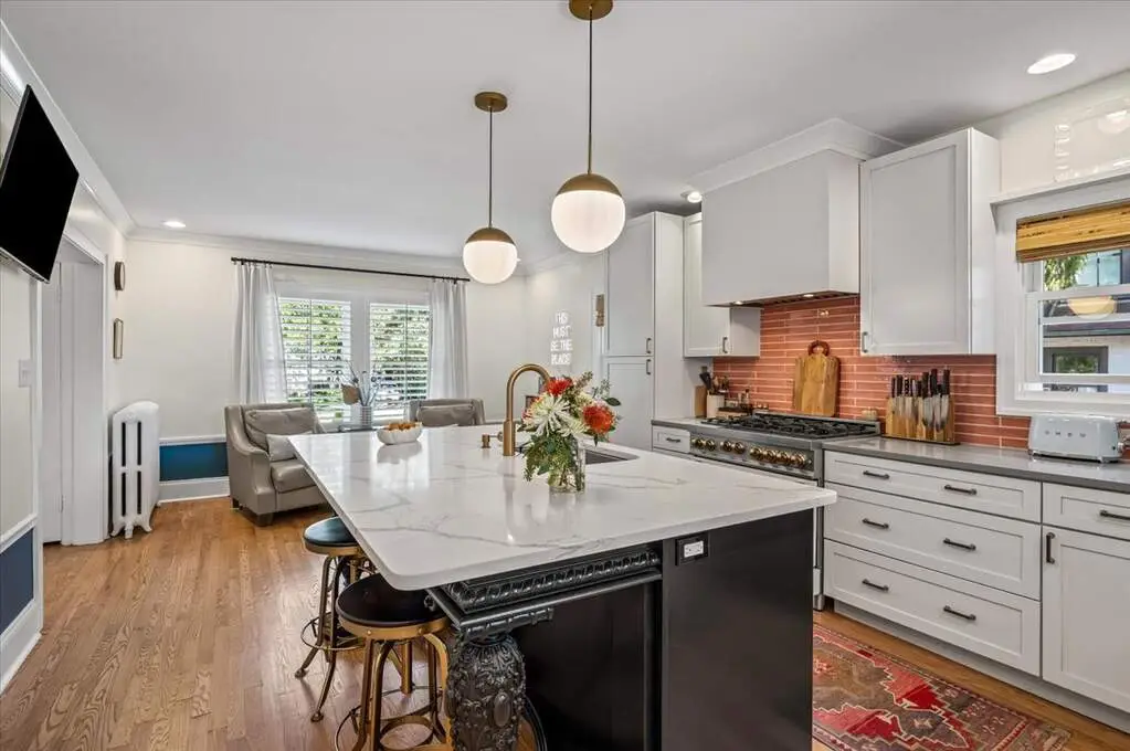 Extensively renovated inside and out by the current homeowners, this home has all the modern updates with a vintage soul! So much to love including it's proximity to town and wide lot with a circular drive. A large living room with a gas fireplace transitions out to deck through French doors. Private 1st floor office with built-ins is perfect for work-from-home. Kitchen is beautifully updated with custom island, 6-burner range, coffee bar and seating area. Breakfast room with door to deck can also be used as a den or playroom. Mud room, laundry and powder room complete the 1st floor. Primary suite with exposed brick chimney has dressing area, dual closets and an expanded updated private bath. The 2nd bedroom has an ensuite bath with 2 closets. Bedrooms 3 and 4 share hall bath with tub. Semi-finished, DRY basement is great recreation space. Additional basement space for storage, workshop and slop sink for dog wash. Homeowner improvements feature stunning terraced front landscaping with patio, roof, gutters, windows, doors, deck, detached garage, copper plumbing, upgraded electrical and mechanicals....all within the last 4 years. This home is the pride of ownership and not to be missed! It shows beautifully with an in-town location and is completely turn-key.