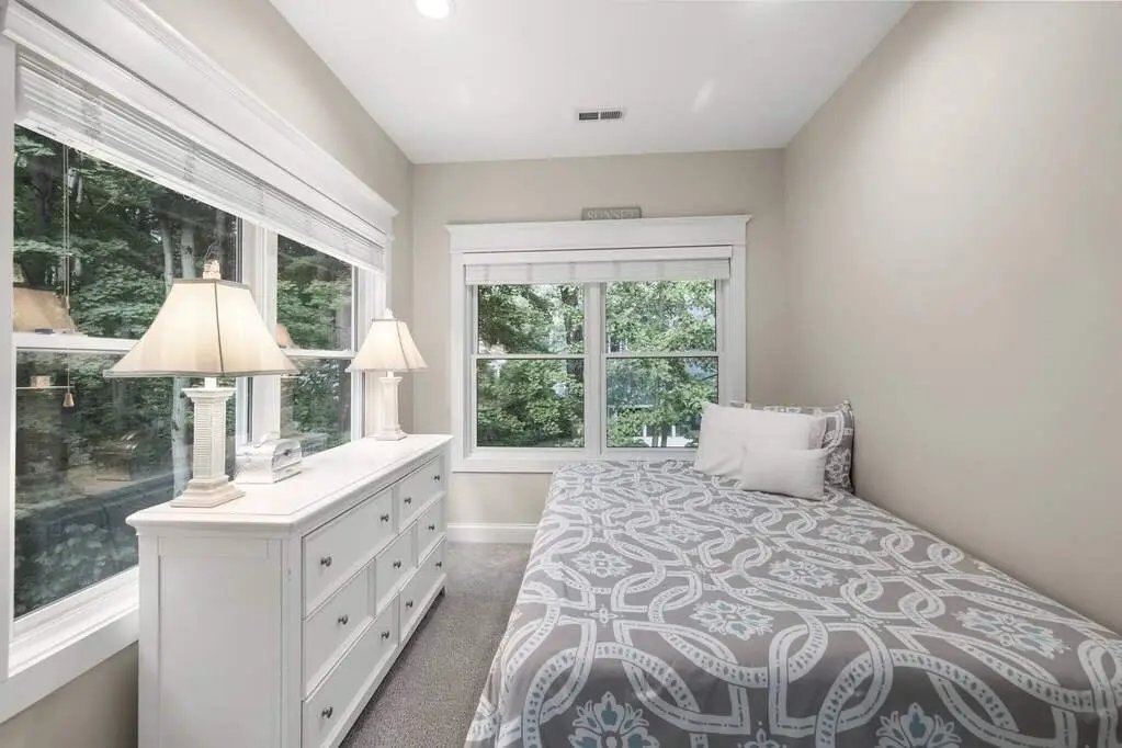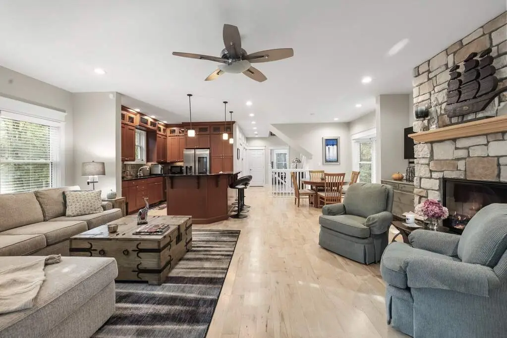 Just steps from the private sands of Gordon Beach, this architectural coastal cottage captures the essence of Harbor Country living with its signature double screened porches and timeless design. This home blends craftsmanship with modern comfort. The main level is anchored by an open great room with soaring ceilings & a stone fireplace, flowing into a gourmet kitchen appointed with upgraded appliances and custom Ash hardwood floors. Thoughtful details include a second stone fireplace in the upper level primary, expansive decks, and two levels of screened porches that blur the line between indoors and out. With 4-5 bedrooms and 3 full baths, the layout provides flexibility for guests or multi-purpose living. A generous lower-level bonus room offers a second gathering space, while the two-car garage is equipped with an EV charging station. Low-maintenance exterior finishes ensure the home lives as easily as it entertains!