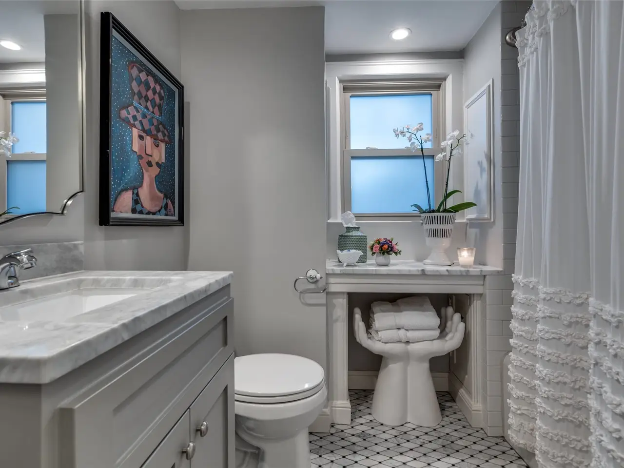 • Marble fireplace