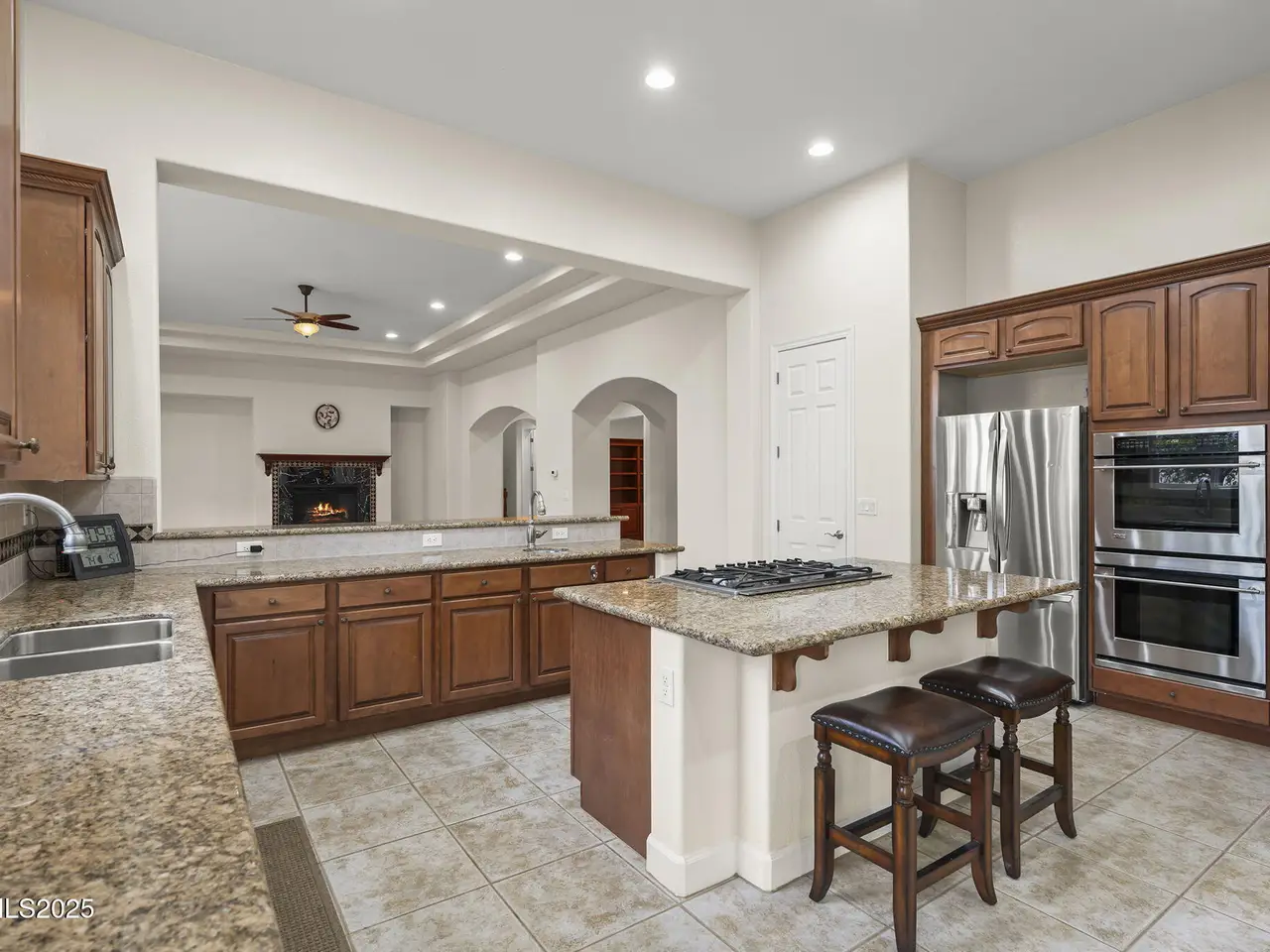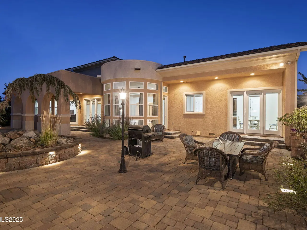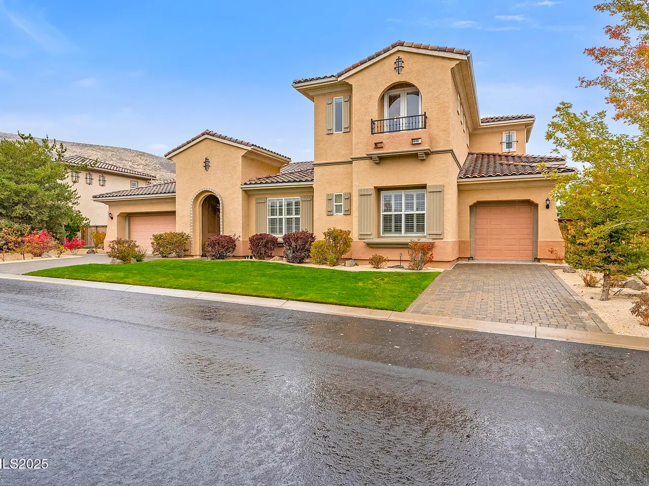 Welcome to this spacious and meticulously cared-for two-story residence located in the highly sought-after, guard-gated community of Arrowcreek. Nestled in the hills of South Reno, this home offers sweeping views of the city skyline, open valleys, and majestic mountains—perfectly framed by large, elegant windows and soaring ceilings on the interior of the home. Inside, you'll find timeless hardwood flooring throughout and a traditional yet open floorplan that offers both comfort and sophistication. The kitchen offers plenty of space for cooking and entertaining with a large peninsula overlooking the living room, kitchen island with a 5-burner gas cooktop and extra space for seating. Dual ovens, spacious pantry and a dining nook accompany the well-designed space. The grand master suite is a serene retreat, complete with a charming bay window, dual walk-in closets, a spa-like soaking tub, and a frameless tile shower. The backyard is perfectly manicured with an expansive paver patio, partial covering, built-in fireplace, gas BBQ stub and multiple well designed gathering spots perfect for a table, lounge chairs or hot tub. With the fountain running in warmer seasons and the beautiful views it's a very relaxing environment to enjoy your spare time in. Enjoy world-class HOA amenities including 24-hour security, resort-style pool and hot tub, tennis courts, a full clubhouse, fine dining options, scenic walking and golf cart trails, and more. Golf memberships are also available through the renowned Arrowcreek Golf Club (not included in HOA).