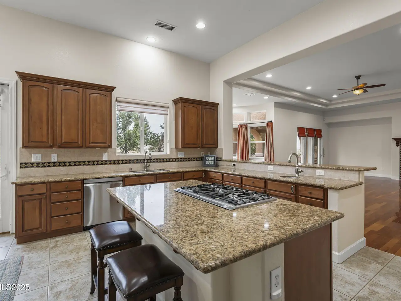 • Large kitchen island with 5-burner gas cooktop