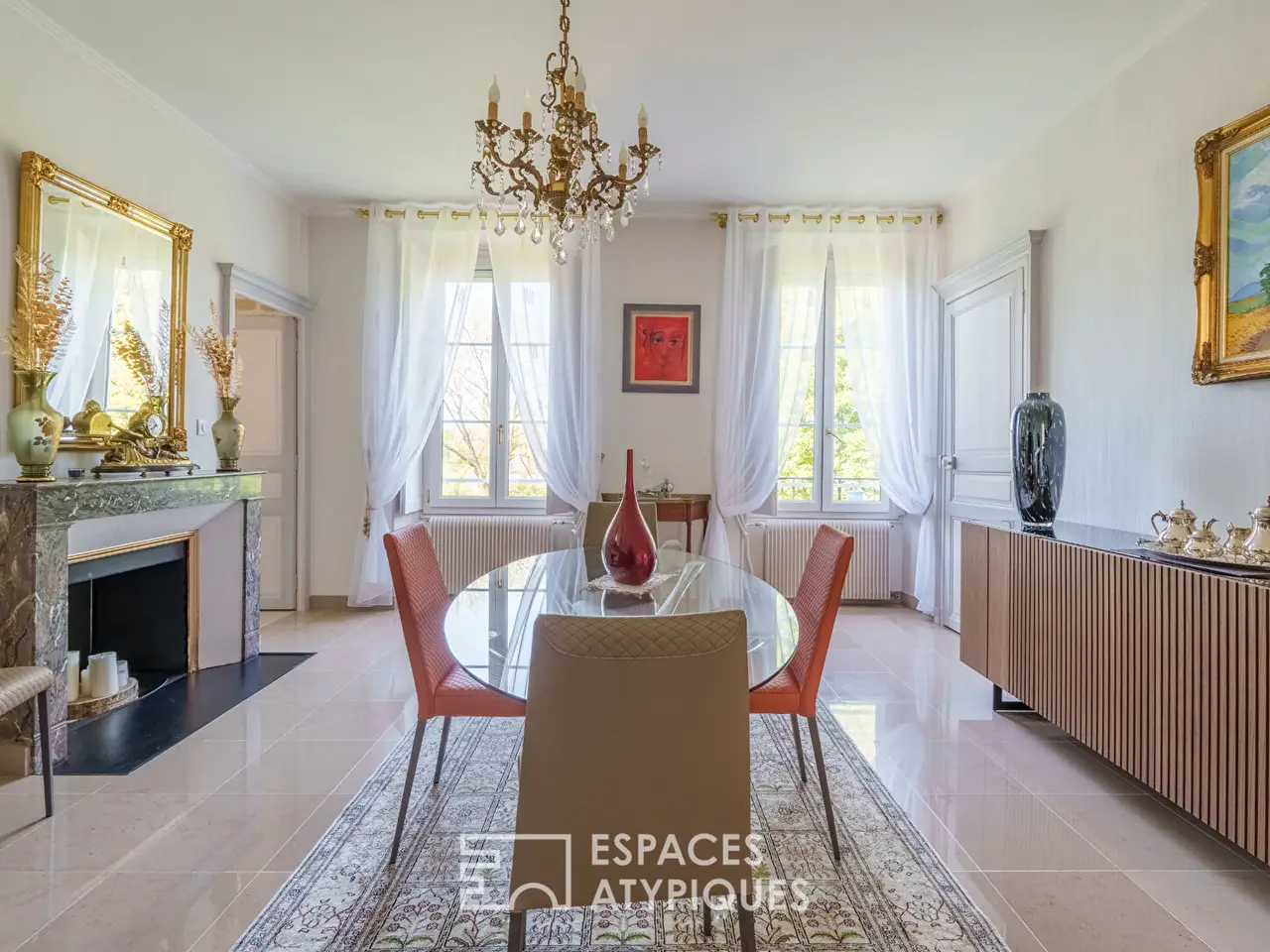 Located in the heart of the charming commune of Suzannecourt, this exceptional bourgeois house offers 528 m2 of living space, nestled in wooded, landscaped grounds. Its elegant architecture, with ashlar facades and perfectly preserved slate roof, gives this property a rare cachet. A large indoor swimming pool, sauna, summer kitchen and relaxation area make this an ideal haven for enjoying the warm weather, just 30 minutes from Lac du Der or Saint Dizier, 1h30 from Nancy, 45 minutes from Chaumont and 1h45 from Reims. The interior of this home combines authenticity and modernity. On the raised first floor, a spacious living room and lounge open onto a balcony with a breathtaking view over the park, creating a bright, convivial living space. The recently renovated kitchen has been designed as a convivial space, perfect for entertaining family and friends. It also features a utility room, a real functional asset. This level also includes two offices. Upstairs, four large bedrooms, a dressing room, a bathroom and a shower room offer optimum comfort for the whole family. The recently renovated ?barn' section adds a touch of sophistication, with a billiard room with remarkably high ceilings, a home cinema, two bedrooms with en suite shower rooms, as well as a laundry room, a storeroom and a wine cellar, ideal for lovers of fine wines. The 180 m2 convertible attic offers exceptional potential for new spaces or extensions, thanks to its beautiful roof structure. The property also features a garage for two vehicles, a garden chalet and a greenhouse. The 264 m2 vaulted cellar is luminous thanks to its openings, providing a unique space for entertaining, with a functional fireplace, a bread oven, a dining room and a partially equipped dance room, directly accessible from the park. Its quiet, leafy setting, close to schools and shops, makes it a rare place to live, combining elegance, comfort and character. This atypical property embodies the perfect blend of architectural heritage and contemporary comfort, offering an exceptional living environment for those seeking calm and authenticity. Shops 5 minutes away by car Schools 5 minutes away by car Property classified as Historic Monument not subject to ECD in accordance with Art R126-15 of the CCH. REF. 506 Additional information * 11 rooms * 6 bedrooms * 3 bathrooms * Floor : 1 * Outdoor space : 6442 SQM * Property tax : 2 679 € Energy Performance Certificate Primary energy consumption e : 267 kWh/m2.year High performance housing