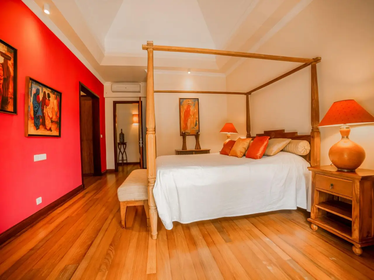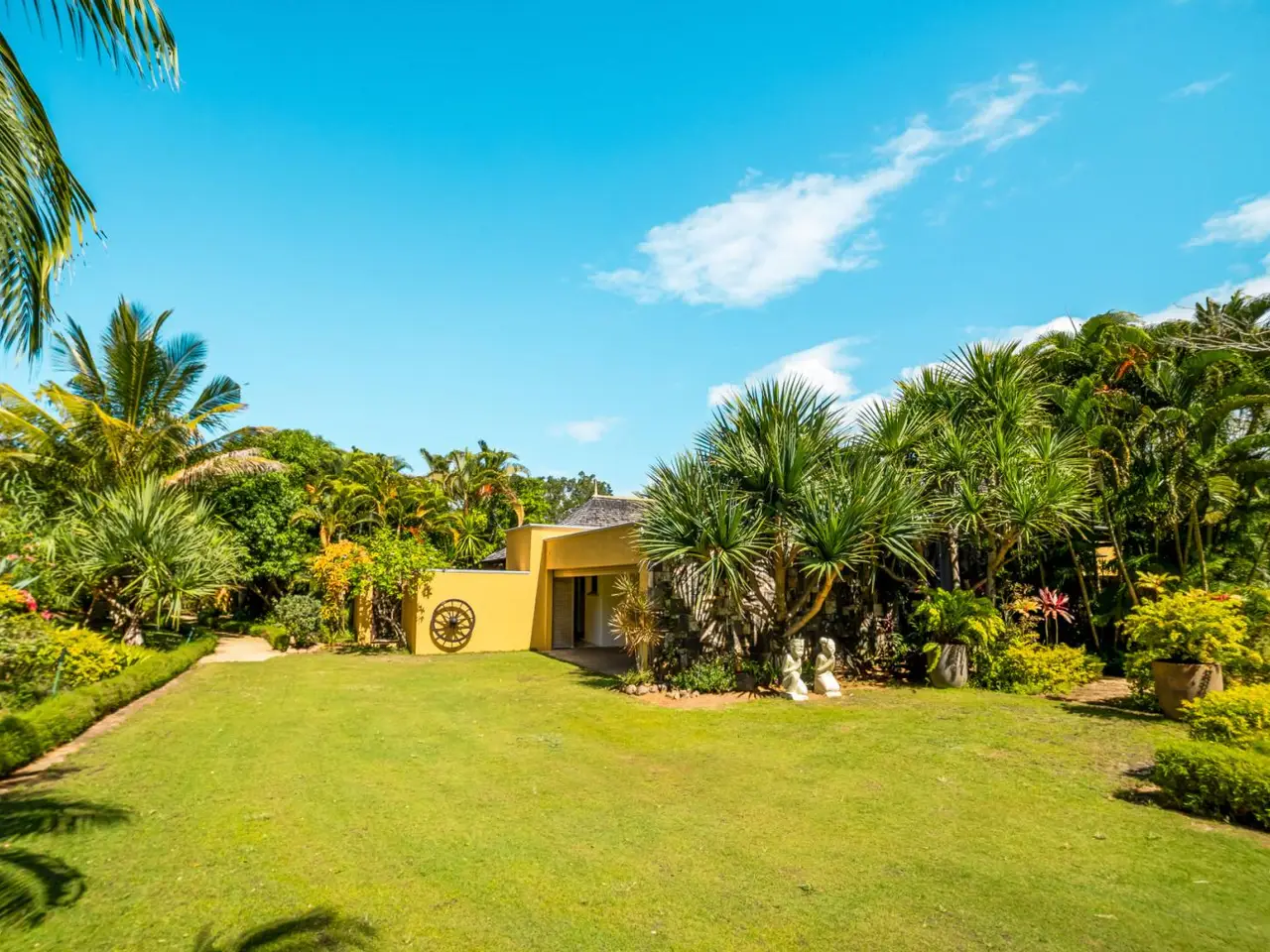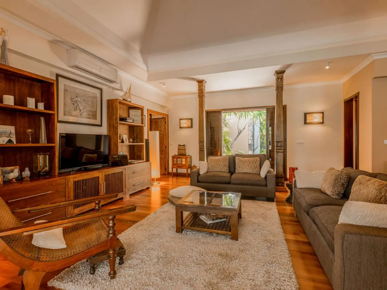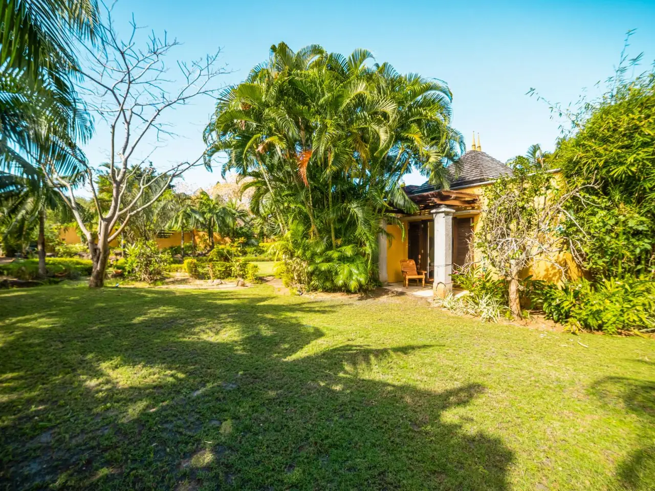 Hidden beneath a lush tree canopy near the Tamarin River, this elegant 5 bedroom villa offers timeless charm in one of Mauritius’ most desirable coastal enclaves. Combining natural textures with a sophisticated, tropical aesthetic, the home stretches across 378 m² of interior space and sits on over 3,200 m² of fully owned land in a peaceful, gated residential estate. The living and dining areas flow seamlessly into a wide veranda that overlooks a serene private pool, bordered by manicured lawns and mature palms. High timber ceilings and rich wood finishes lend a warmth to the home’s character, while modern comforts such as air conditioning in all rooms, a fully equipped kitchen and laundry area ensure effortless living. Five spacious bedrooms, including a master suite with garden views, are paired with generous storage and multiple indoor-outdoor living zones. The villa also includes two garages, five secure parking spots and a golf cart bay, ideal for navigating the nearby fairways. Perfectly suited for international buyers, this luxury property in Tamarin grants eligibility for permanent residency upon purchase. Whether you're seeking a full-time residence or a high-end investment in Mauritius, this property offers both sanctuary and prestige. Contact DIANE WATKINS, Property Consult for a private viewing!