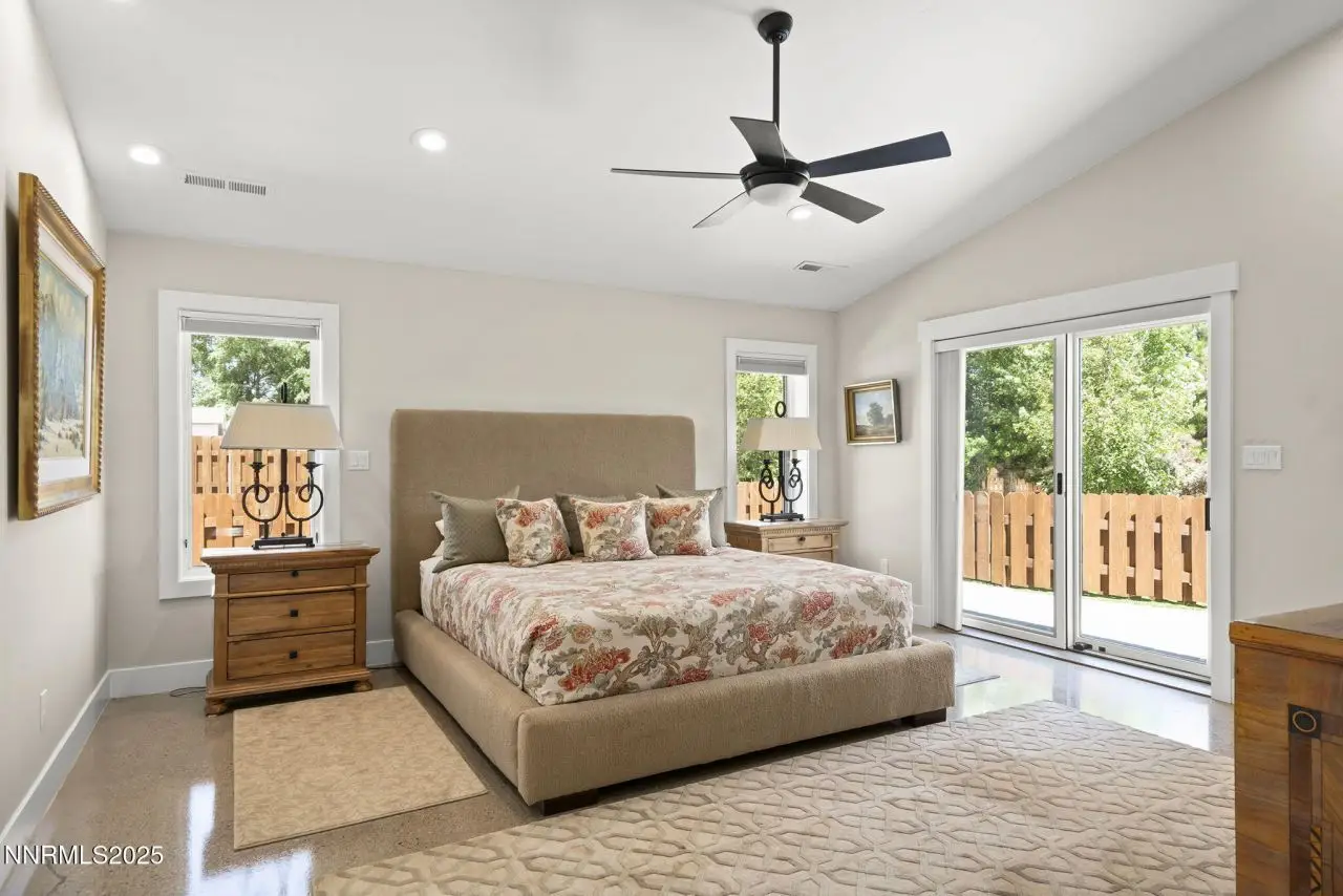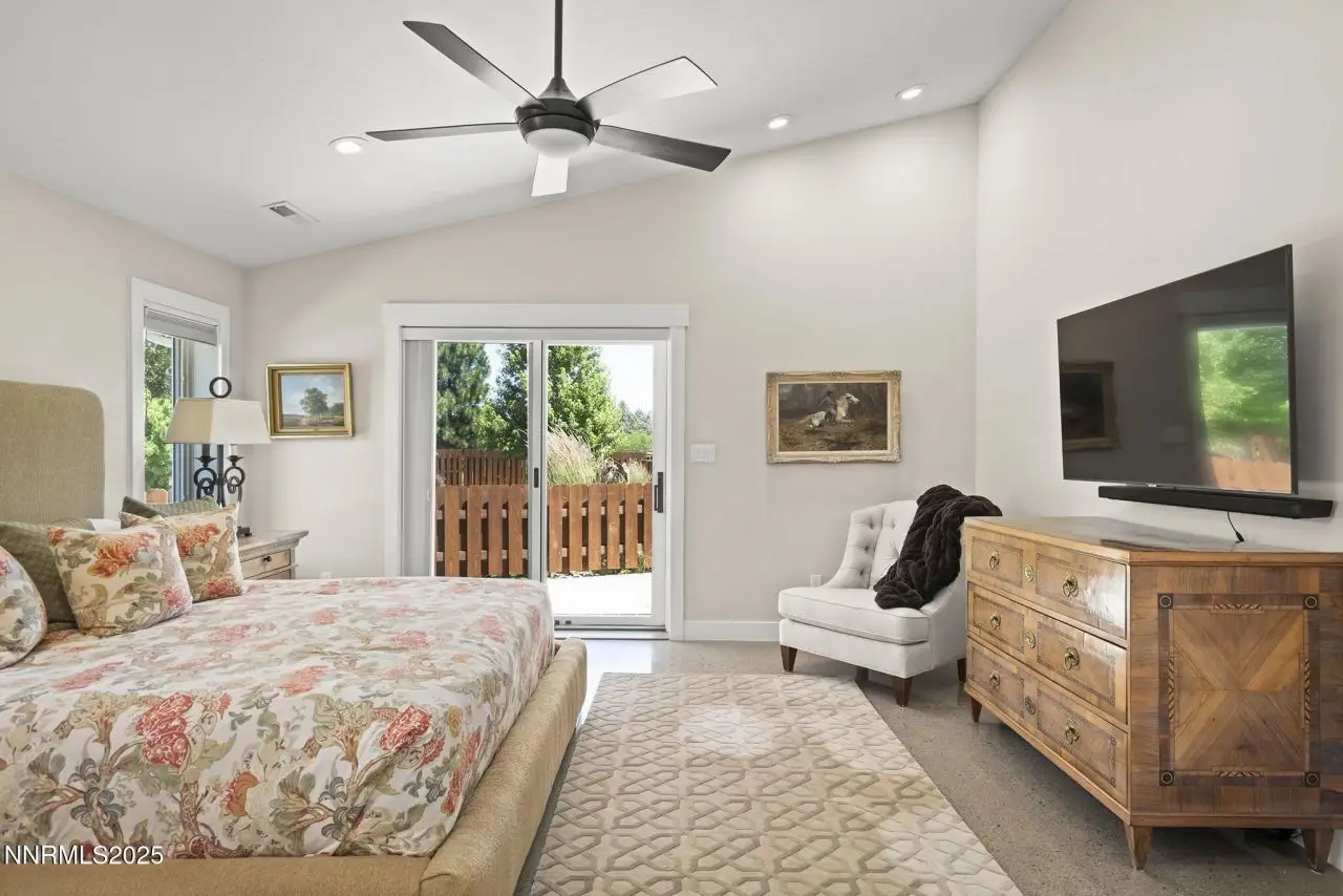 An extraordinary estate gracing 3.1 gated, level acres in the prestigious westside of Carson City. This property offers privacy, freedom, and flexibility with stunning Sierra and valley views and no HOA. This one-of-a-kind 6,000 square foot barn conversion seamlessly blends western character with modern luxury in an artfully reimagined space. Bathed in natural light, the open-concept great room creates a sense of volume and ease, with soaring ceilings, exposed beams, and a seamless flow perfect for relaxed living or refined entertaining. Impeccable finishes, bespoke details, and designer touches elevate every inch from the gourmet kitchen to the expansive custom wall-to-wall glass door framing the back patio and landscaped grounds. The private primary suite is a sanctuary, featuring a spacious walk-in closet, spa-inspired bath, and direct access to the serene backyard. An extraordinary blend of art and architecture, this home is as much a gallery as it is a home. Set amidst meticulously maintained grounds, the property features thoughtfully curated landscaping that doubles as a living canvas, where sculptural elements and botanical design create moments of beauty at every turn. Pathways wind through lush greenery and hand-selected art installations, offering a tranquil and inspiring retreat. Every outdoor space has been designed with intention, framing the home with a sense of serenity and timeless sophistication. Perfect for the collector, the gardener, or anyone seeking elevated, artful living. Ideal for RV, car, or horse enthusiasts, and those seeking peace, space, and Nevada's tax advantages, the property includes a 6-car garage plus dedicated motorcoach and RV parking with hookups. A private gated driveway leads to the beautifully landscaped grounds with walking paths, 50 mature trees, and wide-open areas perfect for dogs and outdoor enjoyment. Just minutes from shopping, golf, top-rated medical facilities, and Lake Tahoe, this rare opportunity offers the ultimate in quiet, elevated living-where your lifestyle sets the rules.