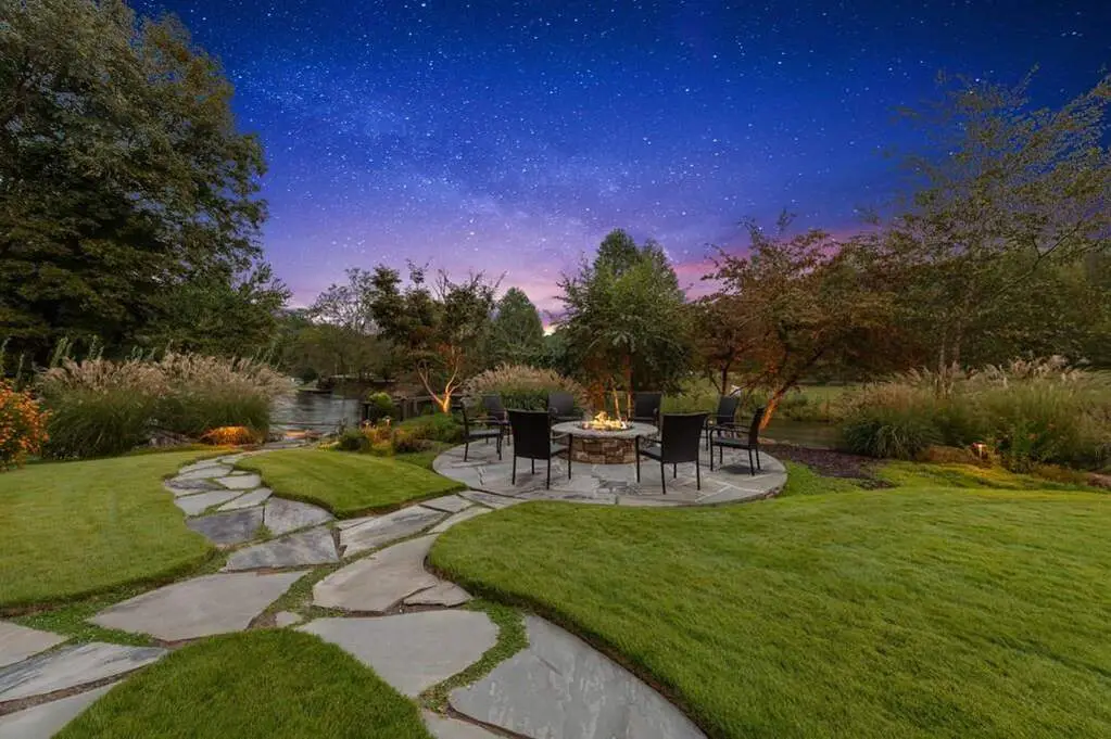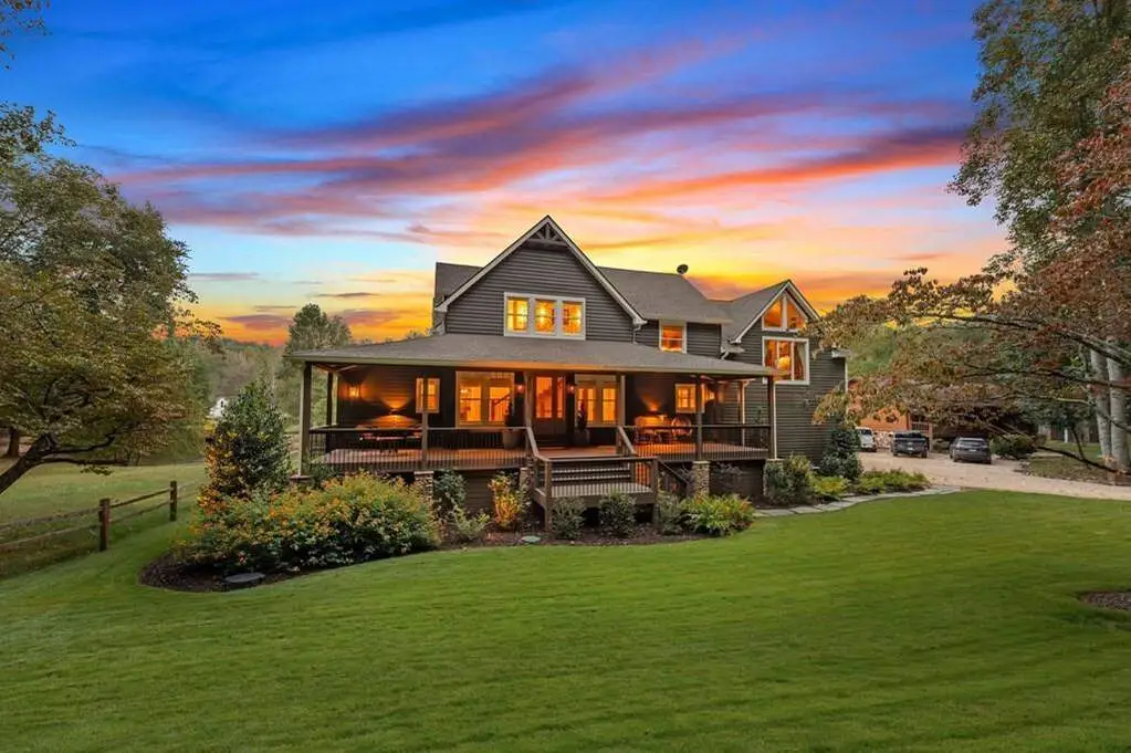 River's Edge is a 6-bedroom, 5-bathroom, fully furnished home with 114' of Toccoa River frontage. It underwent a complete remodel and landscape transformation in 2020, interior designed by Cindy Trimble of Studio Trimble Design of Blue Ridge, GA. The home has 5643 (+/-) heated and cooled sq. ft., 1,400 sq. ft. of front porch, 1,600 sq. ft. of porch facing the river, 16x16 deck extending over the river, a hot tub, and rock firepit with two sets of rock steps leading to the river. The kitchen, living, and dining areas are all open with lots of counter space for cooking and entertaining. Beautiful wide-plank eastern pine floors are featured throughout, with Persian rugs and tasteful dcor that provide a sophisticated lodge feel. The home has three master suites, two on the main floor and one on the second floor. The second-floor master suite features three closets, double vanity sinks, large walk-in shower with separate soaker tub, and heated floors. The second floor also has a bedroom with three single beds and one double bed, plus a full bathroom. The basement has a large living area; two bedrooms, one with a queen bed, and one with four full beds; a full bathroom with double sinks, and walk-in shower. There are four Tennessee fieldstone fireplaces in the home. Located above the garage is a bonus/billiards room with vaulted ceiling, bar, and private balcony. The back porch overlooking the river features a cooking area with a built-in grill and bar fridge along with a sitting area and custom-made dining table that seats eight. The professionally landscaped yard features Zeon Zosia grass, underground drainage, irrigation system, outdoor accent lighting, and camera system. With access to two fish weirs, and a fish feeder that feeds trout daily, it offers some of the best fishing on the tailwater! The attention to detail in this home is something to see and appreciate.