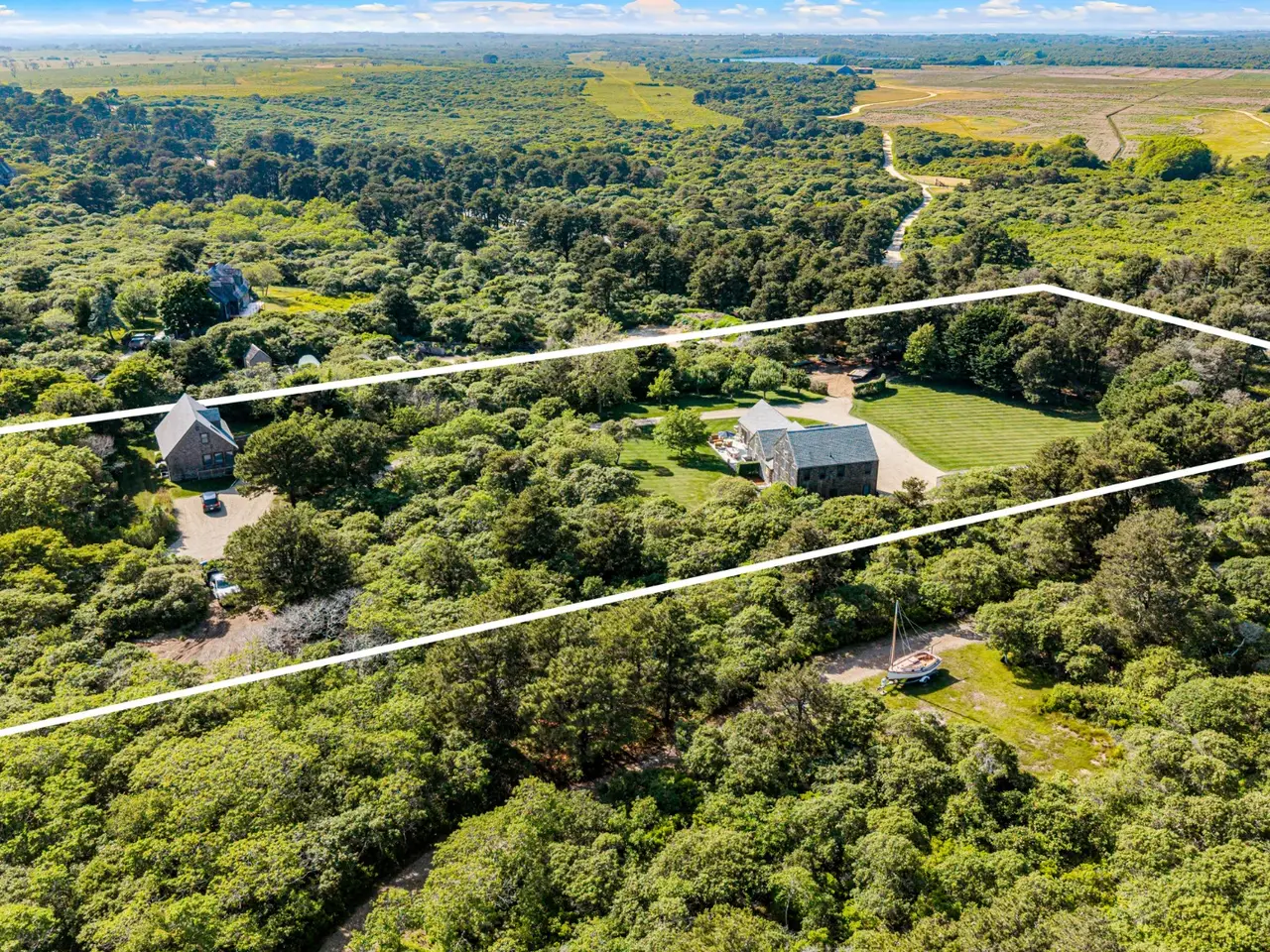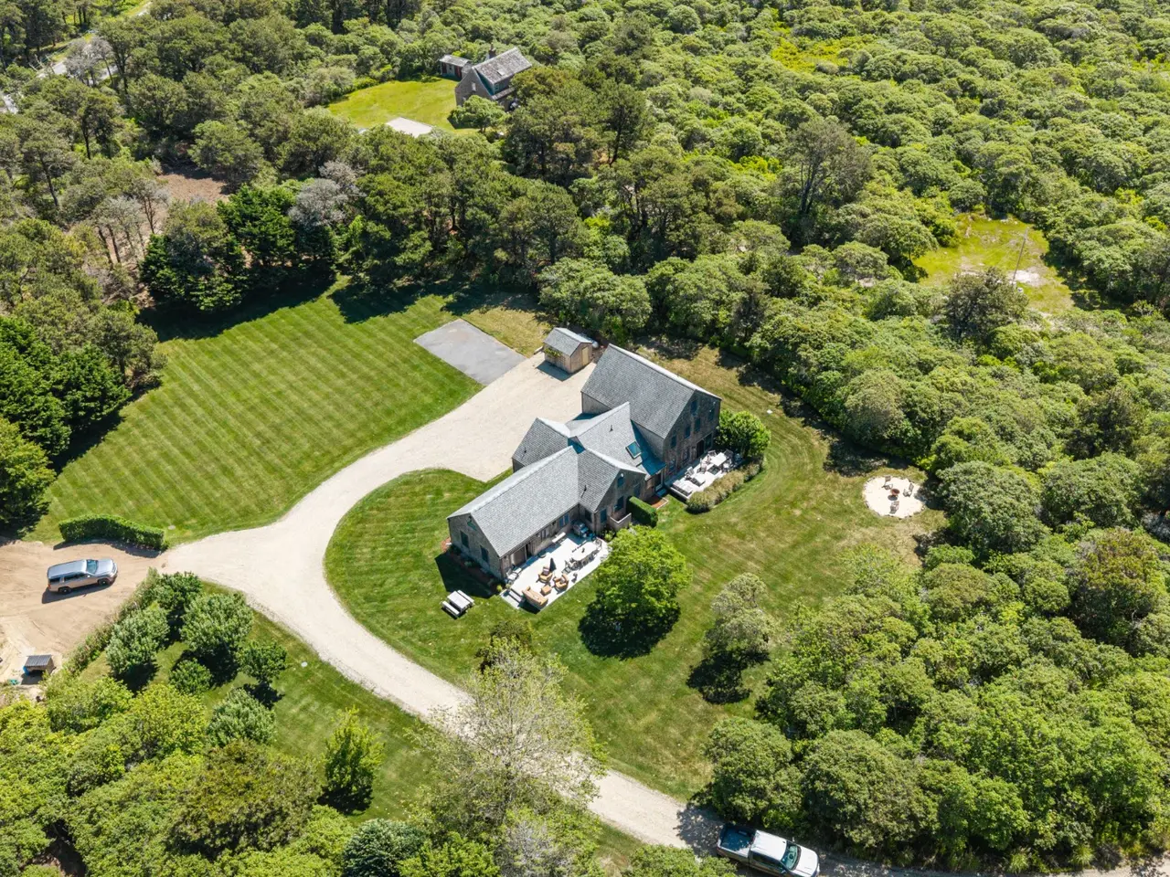 Minutes away from NGC, and including 2 complete homes. 12 Longwood Dr. is a magical property surrounded by manicured lawns and mature natural vegetation. The long winding driveway passes the 2 bedroom Guest Cottage before continuing down a slight grade to the expansive 4 bedroom Main House site. The Main House has an open floor plan with a cathedral ceiling living room, connected to a long hallway, creating privacy for the bedrooms. At the end of the hallway is the TV room. Two outdoor decks, a fire pit, and an apple orchard that produces different varieties, as well as a fruit-bearing pear tree, add to the special ambience of this property. A private path leads to the milestone bicycle path and easy access to Sconset Village. Across Milestone road are hundreds of acres of conservation land, cranberry bogs and miles of trails to walk or bike. Multiple locations available for a pool and a pool cabana or Tennis court.