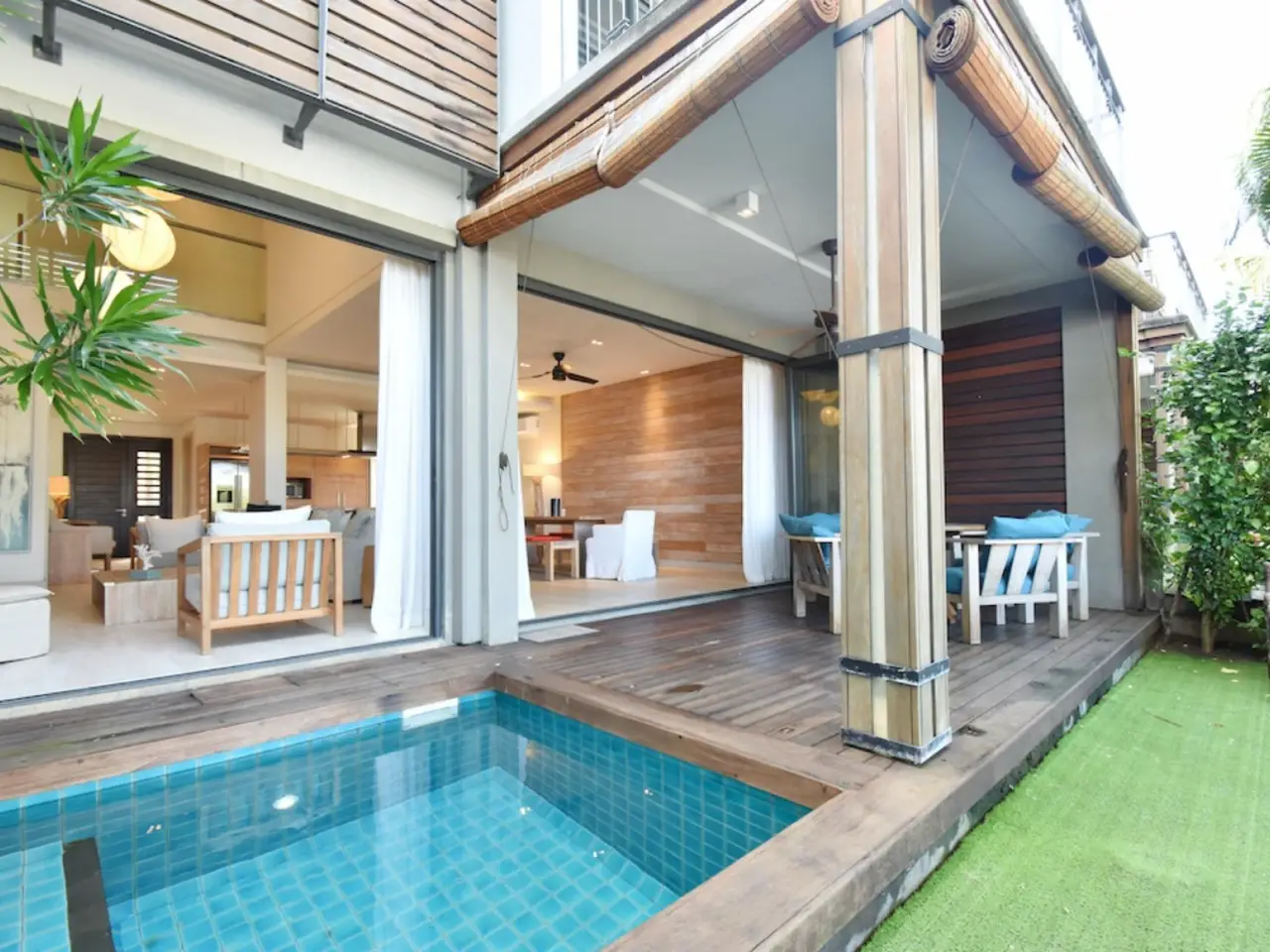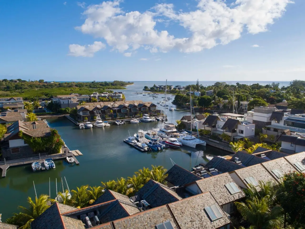 This tastefully furnished, 3-bedroom duplex is situated in the only residential Marina in Mauritius with a private plunge pool and views onto the marina. The entrance to the duplex leads to a contemporary open-plan kitchen that follows in turn to a vast living and dining area. With a habitable surface of 207 m2, the duplex offers generous rooms, with practical spaces not forgotten such as a storeroom and an exterior courtyard accessible via the kitchen. Glass concertina doors in the living and dining room give access to the semi covered terrace and plunge pool which path the way to the marina giving easy access to the sea. Situated on the first floor, all 3 bedrooms have their own adjoining shower rooms. The master bedroom includes a private balcony brushed with soothing palm tree leaves, ensuring complete privacy and tranquility. Residents at the marina benefit from the incredible lifestyle the estate has to offer. This includes easy access to the Black River lagoon, quality boat services, a well-managed syndic, as well as a membership club with equipped gym, spa and sports club with lap pool and tennis courts; not to mention its proximity to Black River’s sought-after amenities and infrastructure. Mauritian residence permits applicable upon purchase. Private mooring attached to title deed.