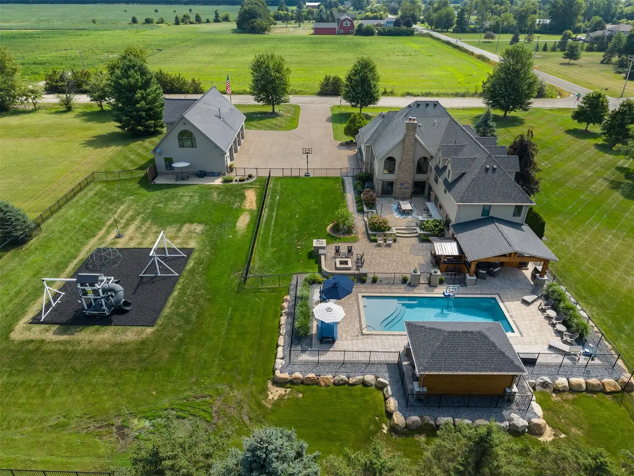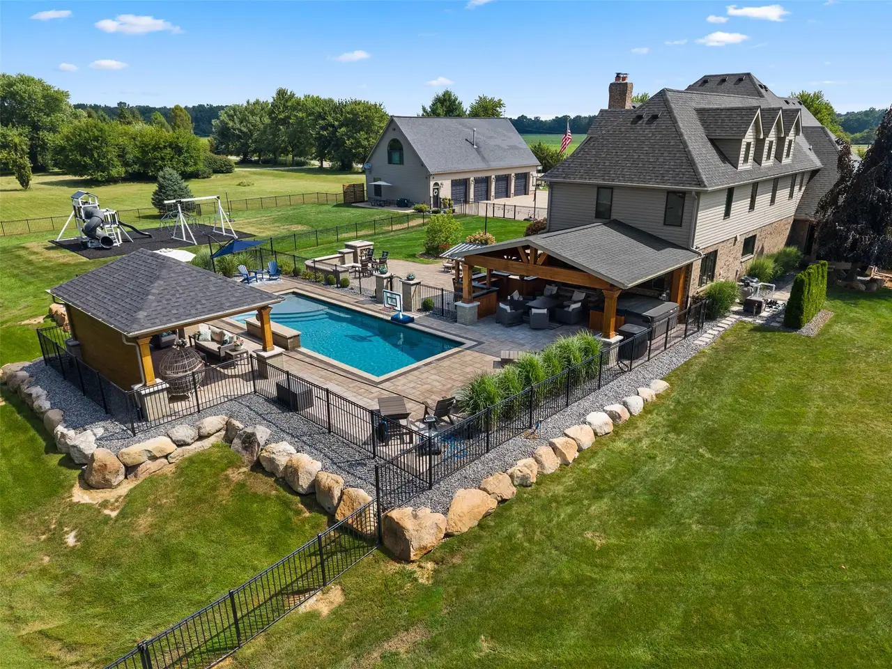 Discover this stunning 5,158sqft, 5-bedroom, 3.5-bath Colonial perfectly set on 2.625 acres in peaceful Ray Township! Every inch of this home exudes thoughtful design and luxury. A 2,400 sq. ft. custom addition (2020) elevates the living space with leathered granite countertops, luxury vinyl plank floors, and a seamless open layout that’s perfect for entertaining. The heart of the home is the chef’s kitchen complete with a walk-in pantry, coffee & beverage stations, and a spacious flow into the family room and playroom. Work from home in your custom-built office, unwind in the inviting living spaces, or host the holidays with ease in multiple gathering zones. Step outside to your private backyard oasis featuring a heated inground pool, two gazebos, fenced yard, and a full sprinkler system. Enjoy every season with a heated garage, 3-zone HVAC, and updates galore including roof, siding, and windows (2015–2017). This home truly has it all luxury, space, and endless style ready for you to make it your own!