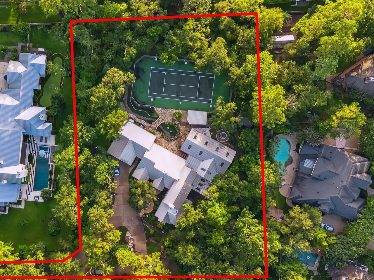 One of a kind, unique opportunity for a 77k+ sqft lot (per HCAD) in the esteemed Bunker Hill Village. Imagine building your dream home in this lush oasis under a canopy of trees, where the opportunities for customization are boundless: pool, tennis/pickleball court, walking paths, summer kitchen and entertaining spaces can all be yours for your personal enjoyment. The Memorial Villages provide unparalleled amenities including desirable schools, private police and fire department, and more! Custom built in 1980, this home with generator was designed for entertaining. From the spacious great room that opens to the spectacular outdoors to the library and renowned poker room, this property saw many notable dignitaries grace it with their presence.