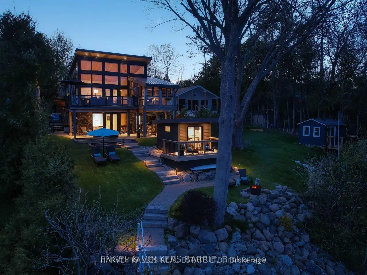 Exceptional Waterfront Retreat on Lake Simcoe! This beautifully renovated home offers 50 feet of prime Lake Simcoe frontage in one of the areas most sought-after locations. With panoramic lake views and a thoughtfully designed layout, this property perfectly blends luxury and relaxation. The main home features a stunning open-concept design with cathedral ceilings and a seamless flow from the living space to the Muskoka room, complete with a cozy fireplace and walkout to a private deck overlooking the lake. The primary bedroom boasts a spa-like ensuite and walk-in closet, offering a serene escape. A separate guest suite ensures privacy and comfort for family and friends. The lower level presents breathtaking lake views, a family sitting room, and double walkouts, enhancing the connection to lakeside living. Outside, you’ll find a detached bunkie for additional accommodation and a waterside storage shed, versatile for all your waterfront needs. Located just minutes from Highway 400, this property is conveniently nestled between Barrie and Orillia, offering easy access to shopping, dining, and entertainment. Situated in a popular waterfront community, this home is a rare gem for year-round living or weekend escapes! Don't miss your chance to own this slice of paradise!