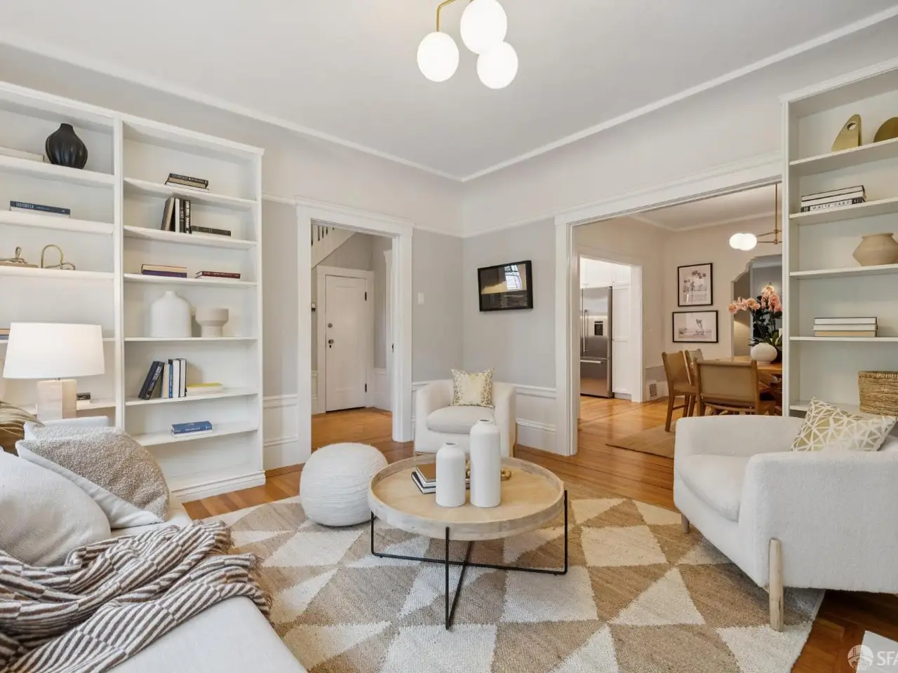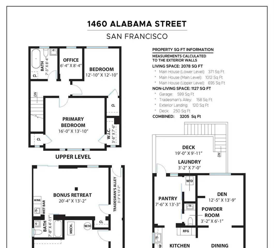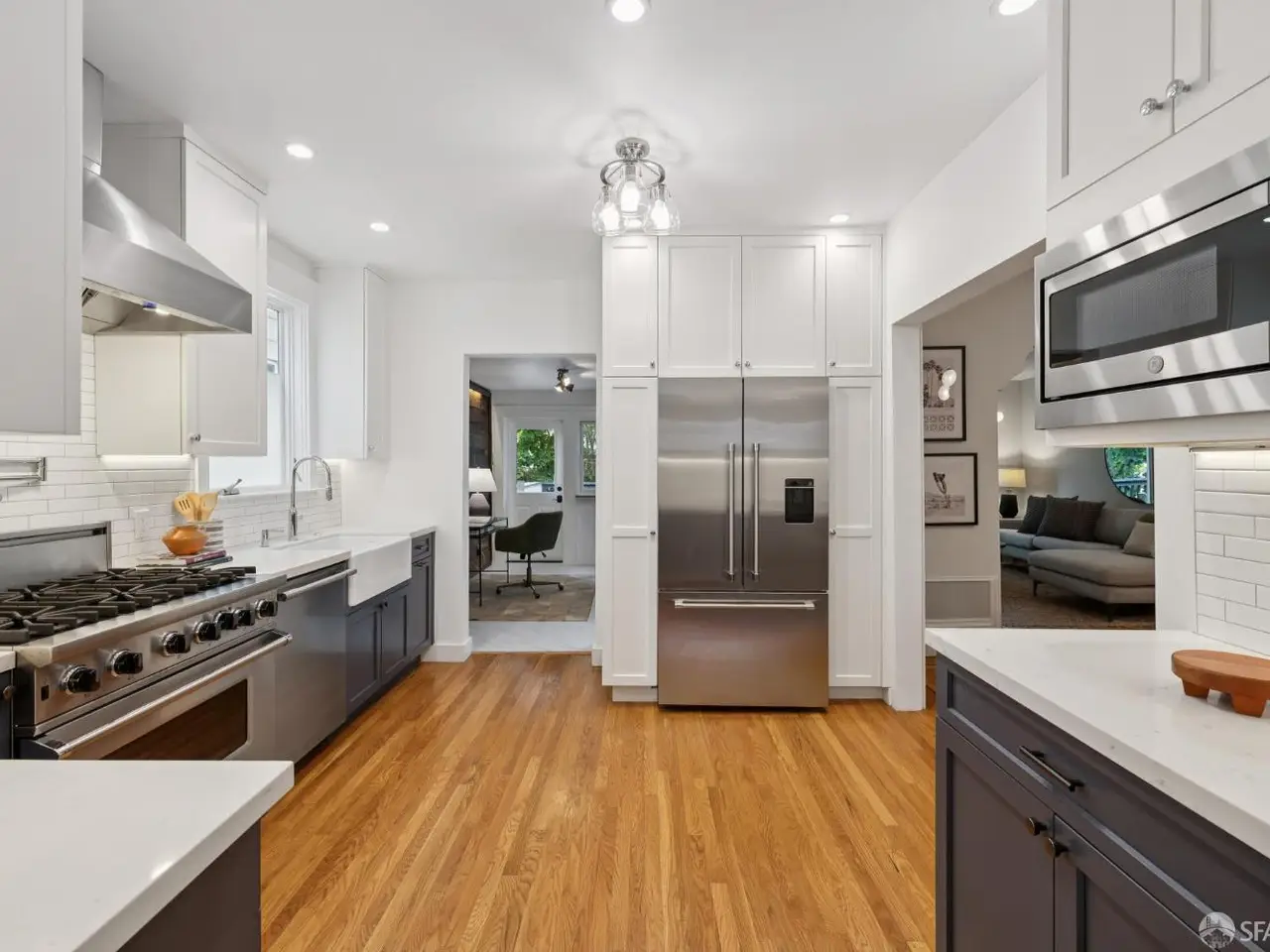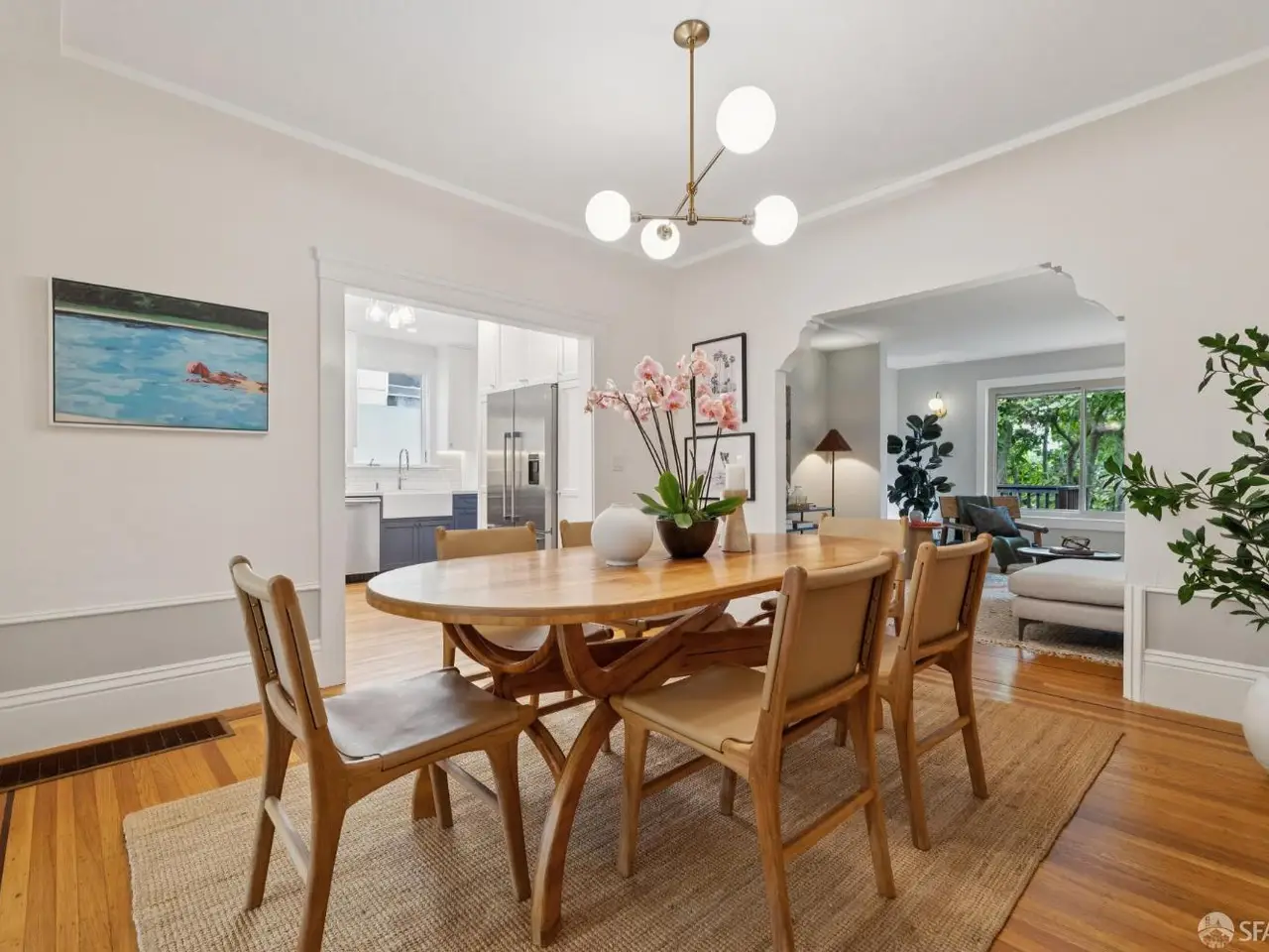 Situated on the border of the Mission District and Bernal Heights, sits this handsome Edwardian style home. On the main level, you enter through the foyer to find two large living spaces, a spacious dining room, and a renovated kitchen. A powder room, a laundry area and a space that can be used as an office or pantry complete this main level of the home. The large rear deck sits under a canopy of magnolia trees. The deck overlooks a spacious, flat yard that is a blank canvas for the new owner(s). Upstairs, you will find the large primary bedroom with 2 large closets, a secondary bedroom, a bonus room, and a full bathroom with an elegant mixture of period fixtures and modern updates. On the ground level, there is spacious garage with room for storage and another sizable bonus room with a wet bar and wine fridge, and a full bathroom. This level also has access to the shaded patio and peaceful backyard. This area of the Mission district has an array of restaurants, lots of shopping and easy access to public transportation and the freeways. Being about a block from both Precita Park and Garfield Pool offers lots of options for fun activities close to home.