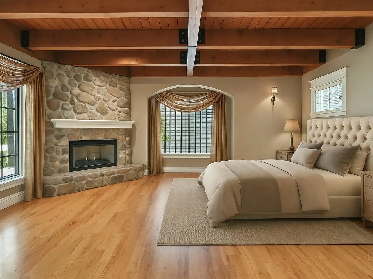 First-floor primary suite with fireplace