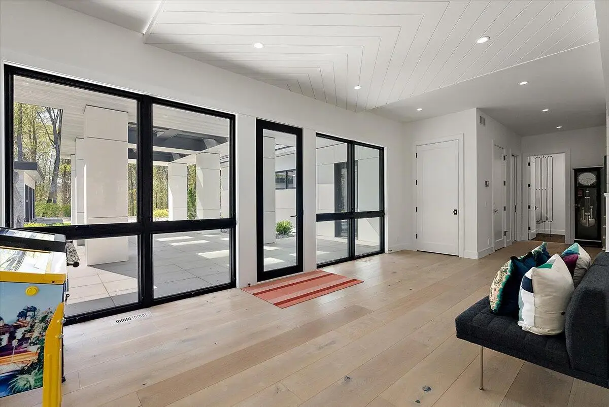 Welcome to this one-of-a-kind custom Zahn-built estate, completed in 2022 with every detail thoughtfully designed and executed to perfection. Spanning three finished levels and offering 5 bedrooms and 4.5 bathrooms, this home seamlessly blends innovative design, high-end finishes, and ultimate functionality. The main and upper levels feature wood flooring, Van Enk custom cabinetry, Cambria quartz countertops, and Marvin windows and doors. The chef's kitchen and oversized pantry are equipped with Thermador appliances, including an induction cooktop. A spacious main-level primary suite includes a luxurious ensuite with radiant floors and a walk-in closet featuring a dedicated washer/dryer. The lower level impresses with polished concrete floors, radiant heat, a second laundry area, and a hidden theater room revealed by automated wall panels complete with custom pegboard shelving and an LED star ceiling. Additional highlights include an elevator servicing all three floors, central vac, Crestron home automation with lighting keypads, Sonos-enabled sound, Samsung 4K TVs throughout, and multiple laundry hookups. Comfort and efficiency are ensured with dual HVAC systems, whole-house humidifiers/dehumidifiers, and a Generac generator. Outdoors, you'll find a 16,000-gallon heated pool with a submerged hot tub, expansive patio space, a gas fireplace, custom stone fire pit, radiant snow melt around key areas, and impeccable landscaping with lighting and fieldstone retaining walls. The home also offers a 2-stall heated garage with cold storage below, plus a heated 3-stall detached garage and a large circular drive for guests. This home is truly a masterpiece designed for entertaining, comfort, and elevated living. Contact us today for a viewing of this home!