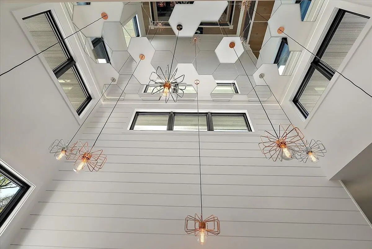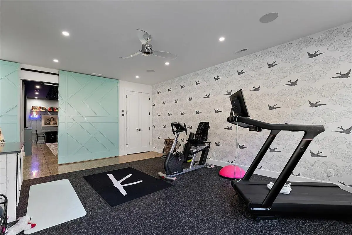 • Hidden theater room with LED star ceiling