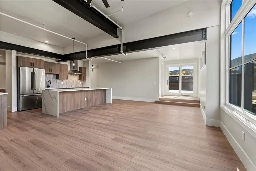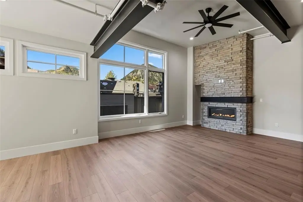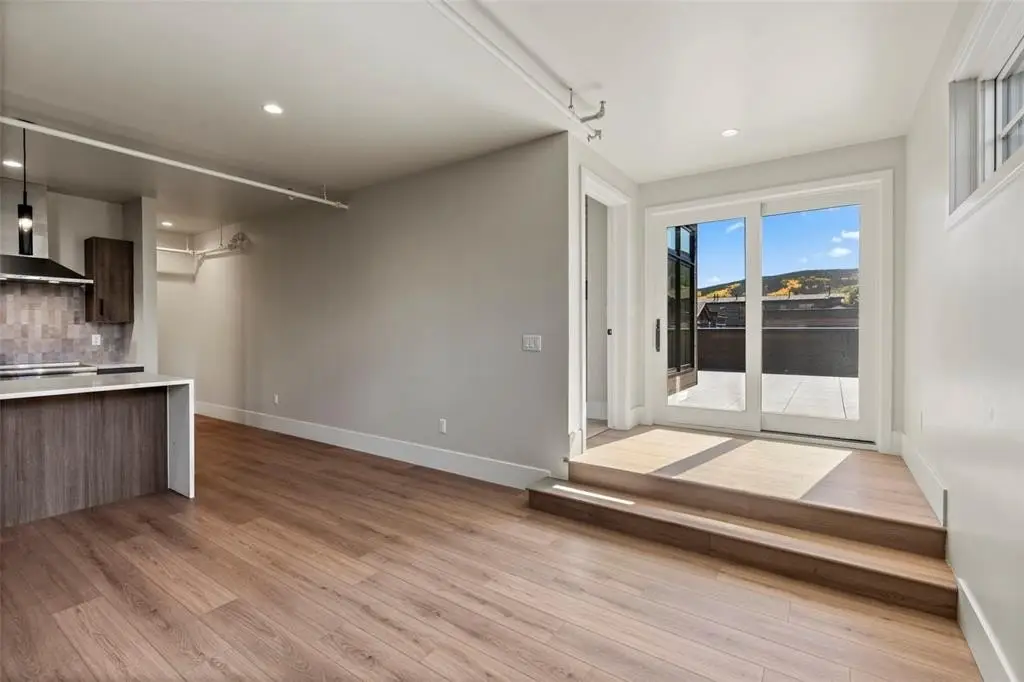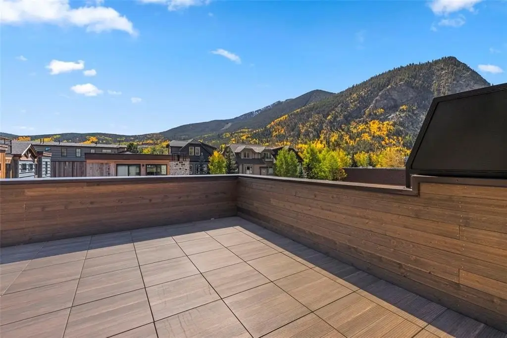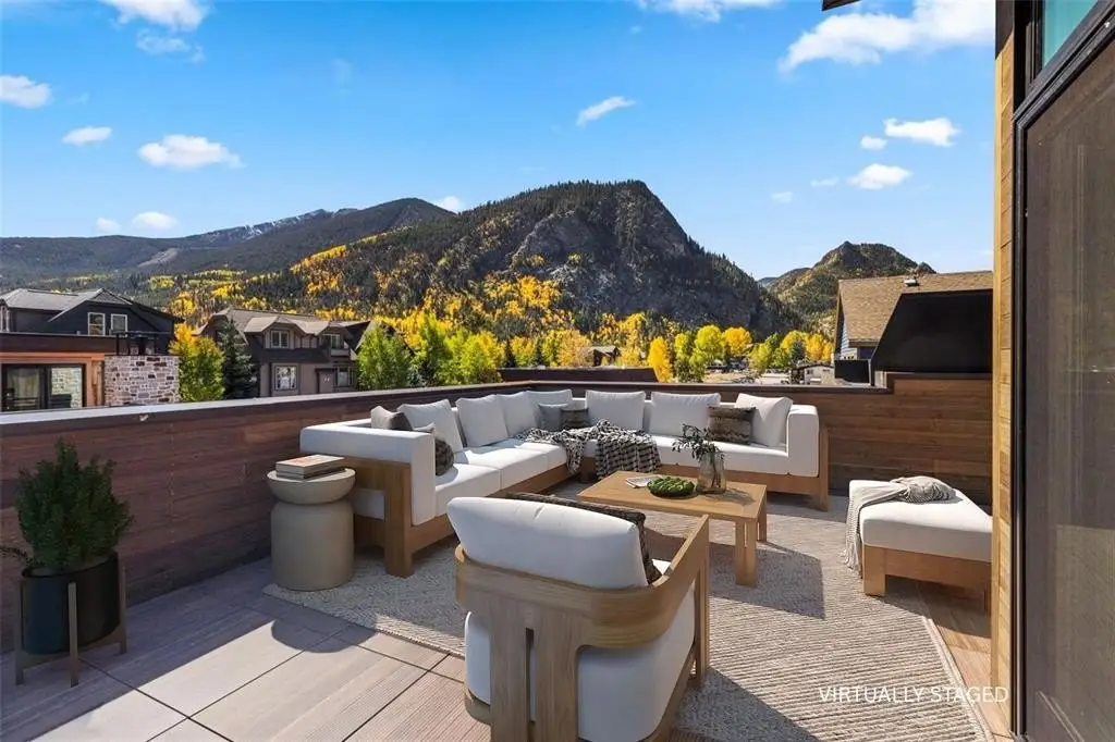 Experience urban mountain living with sweeping views from Buffalo Mountain to Peak 1. This end 2-bedroom, 2-bath residence boasts vaulted ceilings, radiant in-floor heating, and exposed steel beams. The upstairs gourmet kitchen features Thermador appliances, a large island, pantry, and powder room, opening to a spacious deck with panoramic mountain views. The primary suite includes a gas fireplace, walk-in closet, and double-sink bath. Parking includes a heated garage plus a covered tandem space. This Main Street condo is centrally located in Prospectors Marketplace. The marketplace combines local eateries including Crepes A La Carte, Back to Texas BBQ, Fresh Press’d, Kanto x Wasabi, Chucky’s Burgers, Chimayo Grill, Lazo Empanadas and Groovy’s Mac n’ Cheese with McCoy’s Bar on the lower-level location and another bar on the upper-level complete with arcade games and a rooftop patio. The marketplace is tastefully designed and inspired by the rich mining history of Summit County. Just steps away, enjoy all that Main Street has to offer including shops, additional dining, casual bars and bus stops, with easy access to Copper, Vail, and the rest of Summit County.