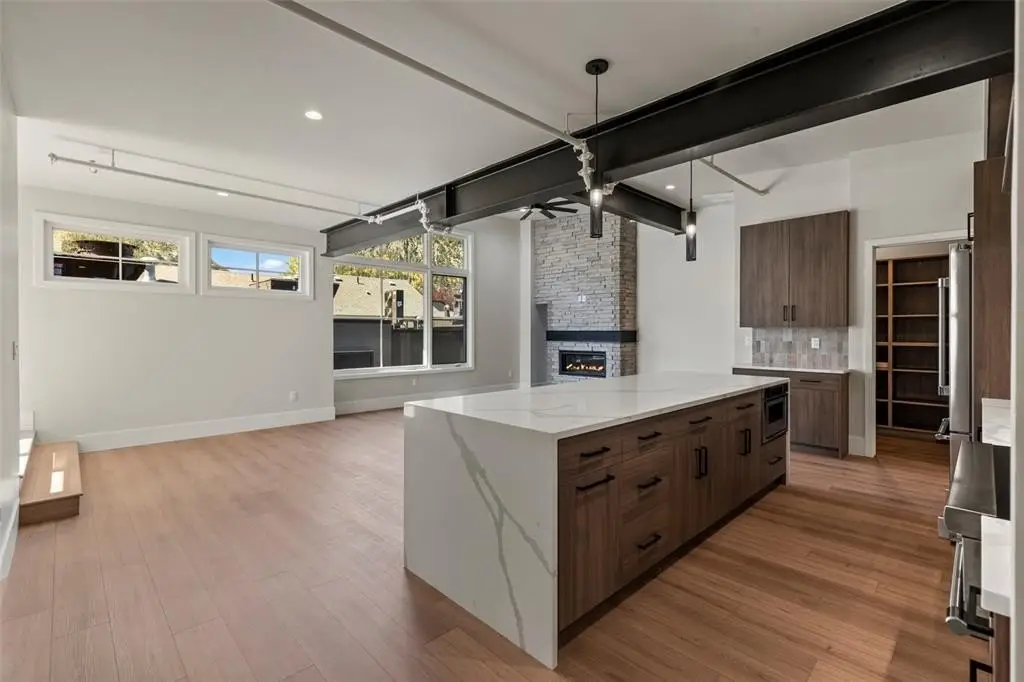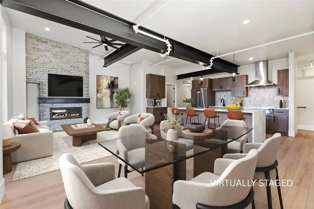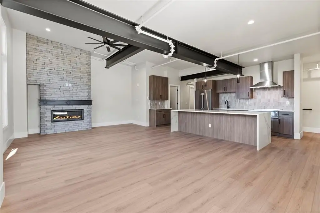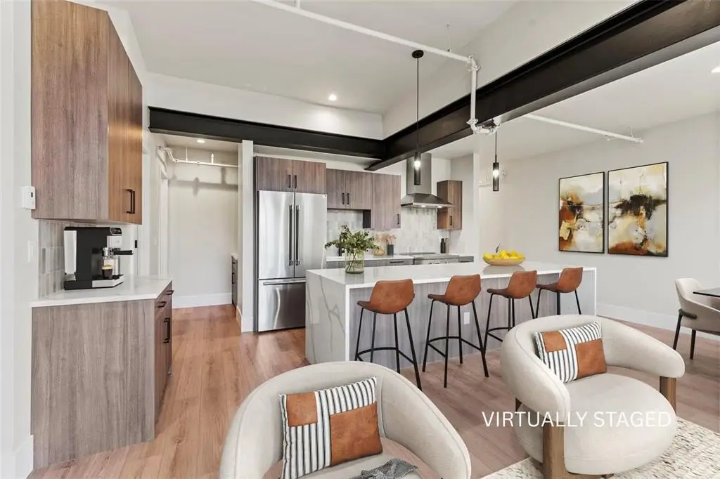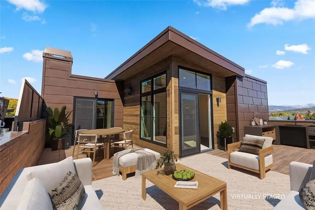 Experience urban mountain living with sweeping views from Buffalo Mountain to Peak 1. This end 2-bedroom, 2-bath residence boasts vaulted ceilings, radiant in-floor heating, and exposed steel beams. The upstairs gourmet kitchen features Thermador appliances, a large island, pantry, and powder room, opening to a spacious deck with panoramic mountain views. The primary suite includes a gas fireplace, walk-in closet, and double-sink bath. Parking includes a heated garage plus a covered tandem space. This Main Street condo is centrally located in Prospectors Marketplace. The marketplace combines local eateries including Crepes A La Carte, Back to Texas BBQ, Fresh Press’d, Kanto x Wasabi, Chucky’s Burgers, Chimayo Grill, Lazo Empanadas and Groovy’s Mac n’ Cheese with McCoy’s Bar on the lower-level location and another bar on the upper-level complete with arcade games and a rooftop patio. The marketplace is tastefully designed and inspired by the rich mining history of Summit County. Just steps away, enjoy all that Main Street has to offer including shops, additional dining, casual bars and bus stops, with easy access to Copper, Vail, and the rest of Summit County.