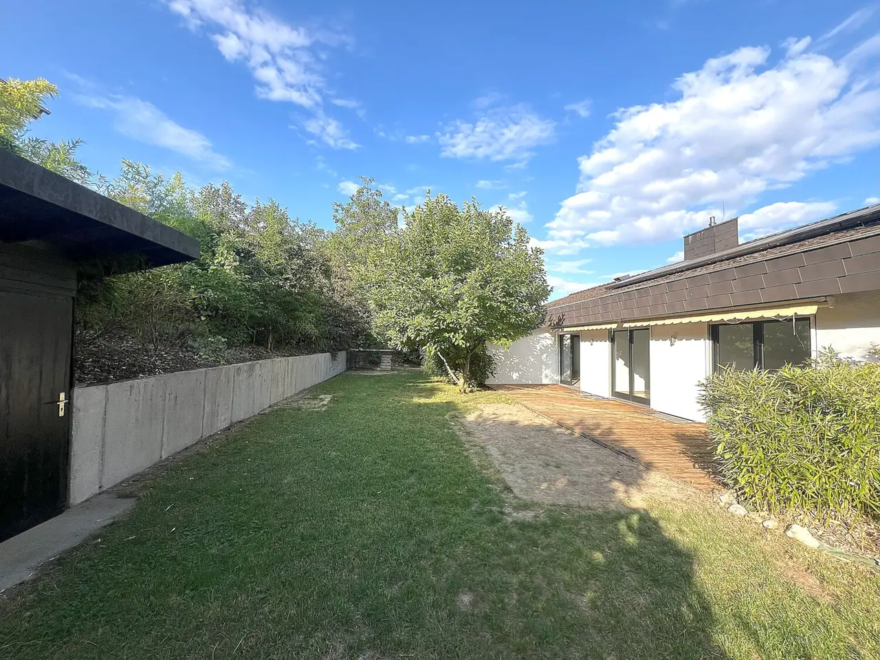 This well-kept detached house with approx. 248 m² of living space plus a separately accessible and lockable granny apartment is situated on a generous plot of approx. 873 m². The house was extensively renovated and refurbished in 2013-2021 and offers modern living comfort with high-quality furnishings. The quiet location combined with a fantastic view over the Rhine plain makes this home a rare opportunity. The main house offers spacious family living on two levels. The modern, newly renovated wooden staircase takes you to the upper floor. Here, the centerpiece is the gorgeous and timeless fitted kitchen with space for a dining area that will make any cook's heart beat faster. The seamless transition to the light-flooded living area creates an open-plan feel. Thanks to the large windows, you live surrounded by nature. The access to the secluded garden and the adjoining breakfast terrace should not go unmentioned here. There are three very attractive rooms on this level that offer individual usage options. The upper floor is completed by a bright daylight bathroom with bathtub and shower as well as a guest WC. The separately accessible 2-room granny apartment is ideal for guests, tenants or as a home office. It is fully self-contained and has its own entrance with a terrace in front. The high-quality and timeless materials used in the fittings are impressive. A pellet heating system and a solar system ensure an efficient and environmentally conscious heat supply. The separate granny flat concept offers additional flexibility with its own heating and water connection zone. The outdoor area impresses with a dream garden with well-tended plants and an impressive view of the Rhine plain and the surrounding countryside. A double garage and two parking spaces in front provide convenient parking right next to the house.