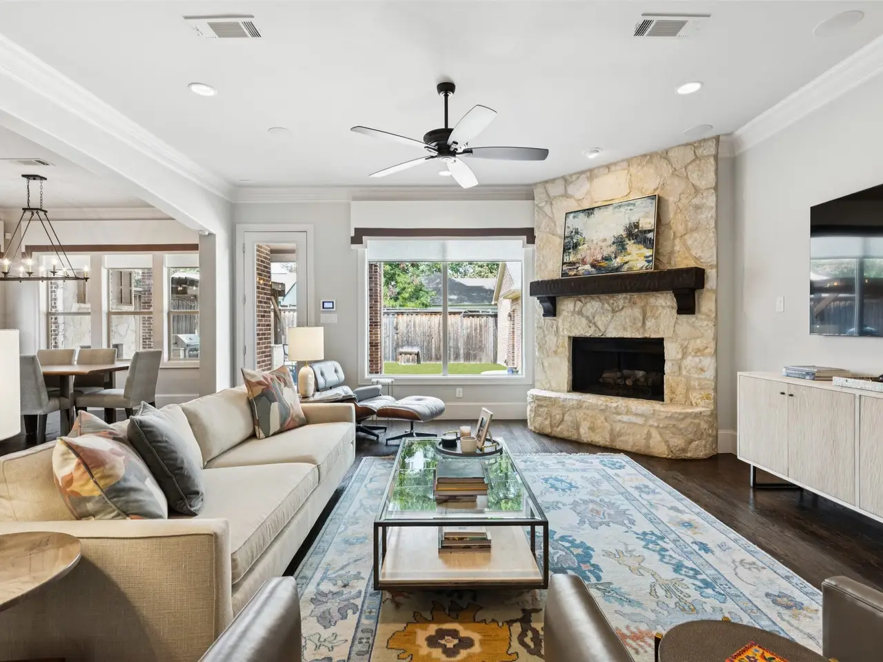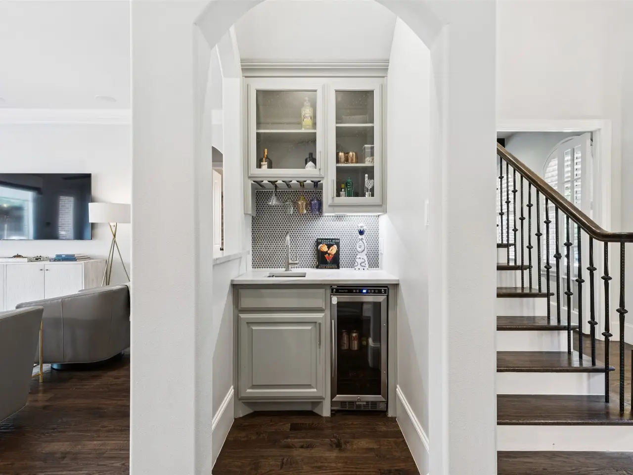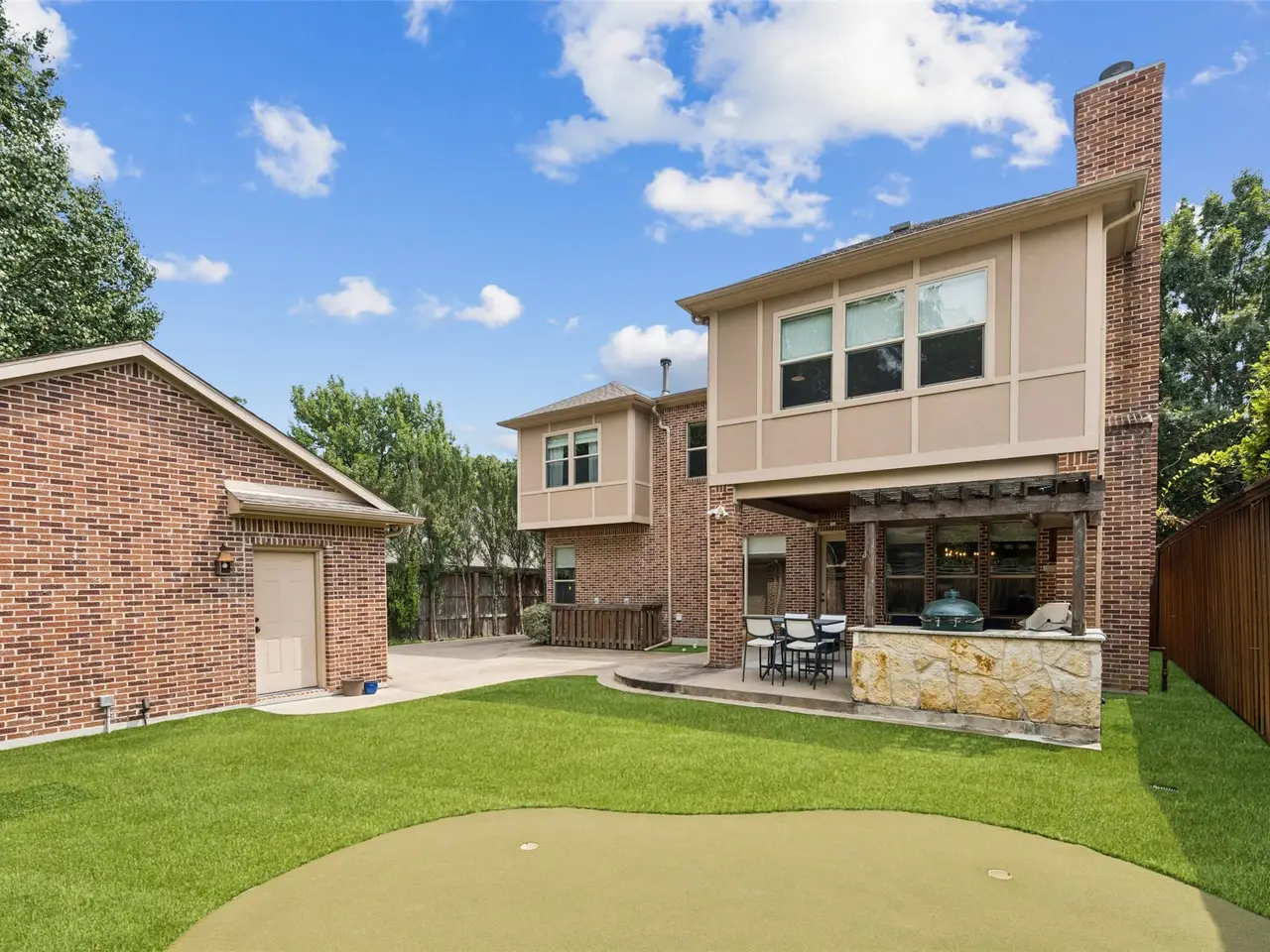 Located in the coveted Mockingbird Elementary attendance zone, this 2013 J. Gregory-built home blends classic Dallas charm with modern functionality. A formal entry opens to an elegant dining room and a private office with custom built-ins. The open-concept design features a chef’s kitchen with quartzite countertops, double ovens, gas range, butler’s pantry with ice maker, and a large walk-in pantry - all overlooking a light-filled breakfast room and living room with a wall of windows, fireplace and a stylish wet bar. The first floor also includes a guest suite with a full bath, while upstairs offers a spacious game room with wet bar and wine storage, along with a utility room with sink and walk-in attic access. The luxurious primary suite boasts marble tile, jetted tub, separate shower with dual shower heads, and an oversized walk-in closet. Two additional bedrooms share a Jack-and-Jill bath. Designed for year-round enjoyment, the backyard is fully turfed and features a putting green, covered patio with fireplace, and a built-in grill station. A detached two-car garage with electric gate completes this thoughtfully designed property.