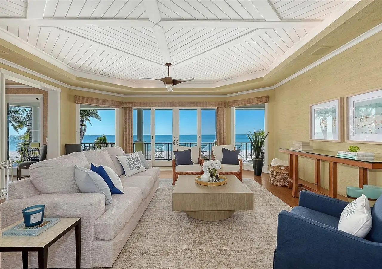Welcome to Paradise! Experience the ultimate in Longboat Key and Gulf-front luxury with this spectacular nearly 6,000 sq. ft. beachfront estate on Longboat Key. Perfectly positioned on a pristine stretch of white-sand shoreline, this gorgeous beach home offers unobstructed, panoramic views of the Gulf of America from nearly every room in the home. Also featuring over 3,000 sq. ft of under-roof outdoor relaxation and entertainment space. Designed for family gatherings and beach front fun, this is the perfect beach home for tranquil coastal living. This beach home features 6 bedrooms, 6.5 bathrooms, a den and a family room, as well as a stunning 24' x 24' rooftop sun deck. Built in 2002, this waterfront beauty offers many unique details like the Mahogany front door, elevator to all 3 levels, all new exterior paint and interior paint, and best of all three expansive levels of outdoor living space, each capturing the beauty of daily sunsets and unobstructed Gulf and beach views. At the heart of your beachfront oasis is a newly refurbished resort-style pool and new paver patio, framed by swaying palms and endless water views. Just steps beyond the pool is access to your 97' of private beach frontage leading directly to the soft sand and crystal-blue Gulf waters. The main level Owner's suite is large, with direct and unobstructed Gulf and beach views. The kitchen is spacious and open, with top-of-the-line appliances and direct Gulf and beach views to enjoy while you cook. The guest bedroom suites are all spacious, with ensuite bathrooms and great Gulf and beach views from every bedroom. Whether you're seeking a serene retreat or an entertainer's dream, this exceptional Longboat Key residence delivers unparalleled beauty, privacy, and a front-row seat to Florida's most breathtaking coastline. Hurry up and get here, the views are spectacular!