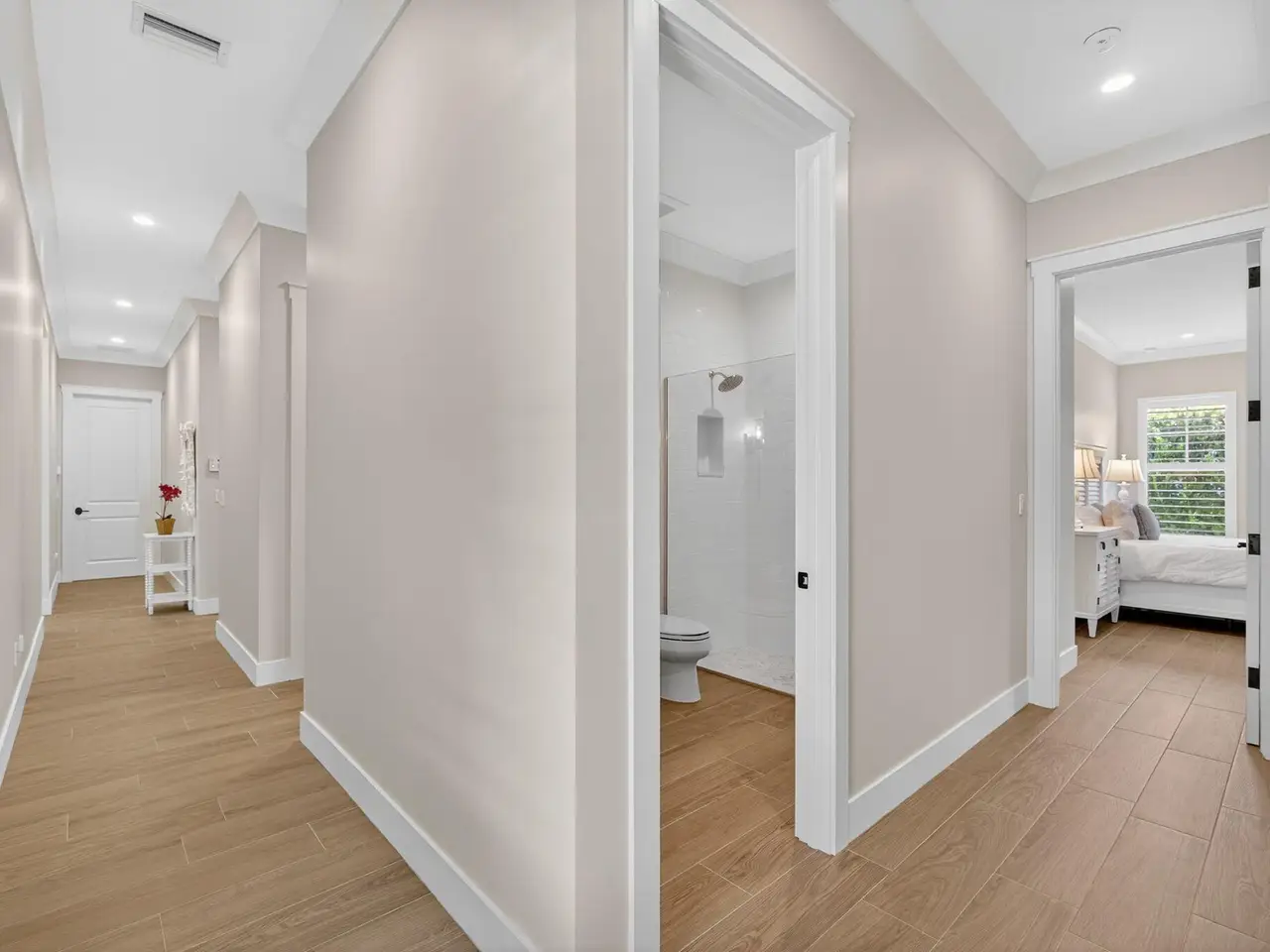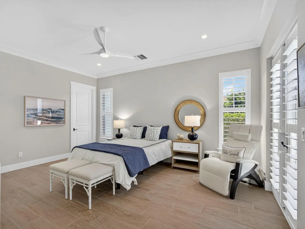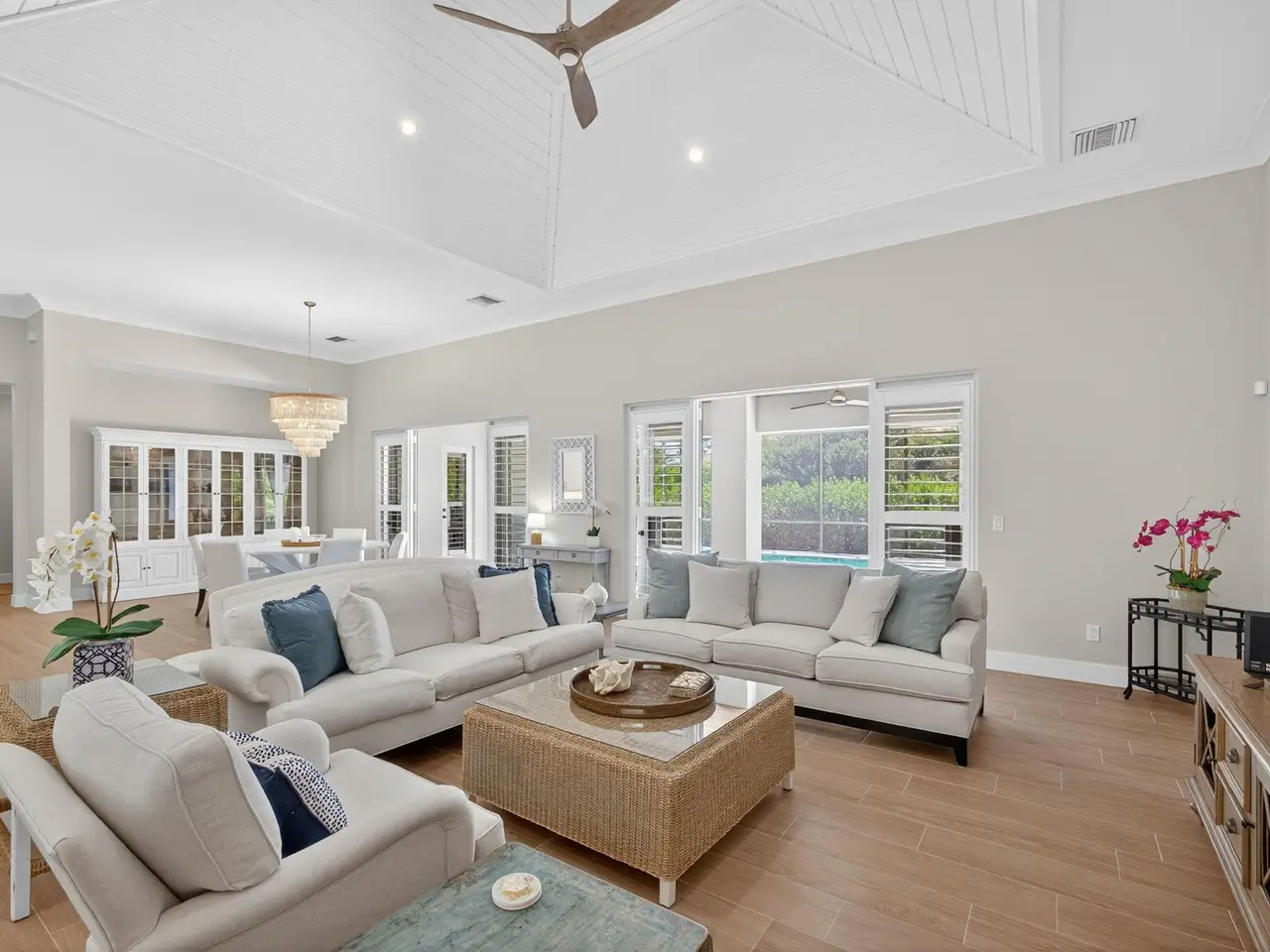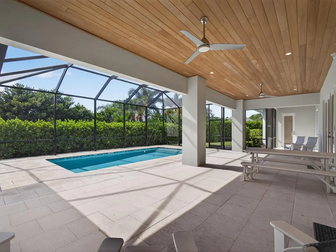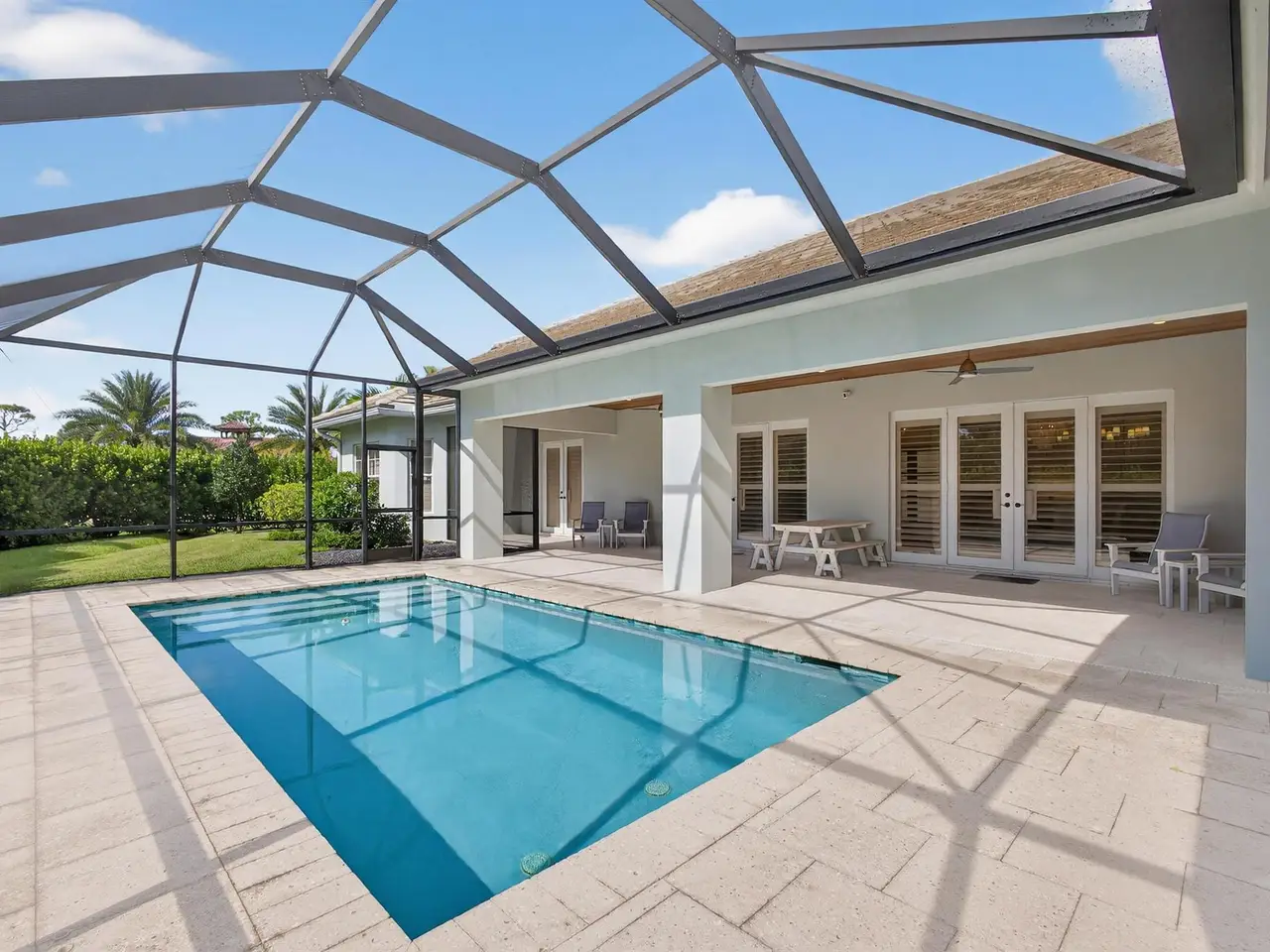 Stunning One-Story Modern Residence In Hobe Sound Golf Club! Built In 2020, This Impressive 5 BR, 5 BA Home w/3 Car Garage, Corner Lot on .43 acres Features An Open-Concept Split Floor Plan Designed For Both Comfort & Entertaining w/Generator, All Impact Windows & Doors, Porcelain Tile Floors & Plantation Shutters Throughout. The Light-Filled Living Spaces Flow Seamlessly to the Gourmet Kitchen & Spacious Great Room, Showcasing Contemporary Finishes, Great Rm has Tray Ceiling w/Tongue & Groove Shiplap. Chef's Kitchen is Appointed w/Oversized Island, Quartz Countertops, Walk-In Pantry, Thermador Appliances, & Gas Range. The Luxurious Primary Suite Opens to Lanai & Pool Area & Includes Spa-Inspired Bath w/Soaking Tub, Frameless Glass Walk-In Shower, Custom Walk-In Closet w/Built-Ins, 4..... Oversized Guest Bedrooms Provide Comfort & Privacy, While Large Laundry Room Features Sink, Counters & Extensive Storage Cabinets. The Generator Adds to The Home's Quality & Peace Of Mind. Step Outside to A Screened-In Lanai Overlooking the Heated Saltwater Pool & Expansive Corner Lot Perfect For Enjoying Florida Living At its Finest. Ample Storage Complete This Exceptional Home In The Serene And Secure Hobe Sound Golf Club Community.