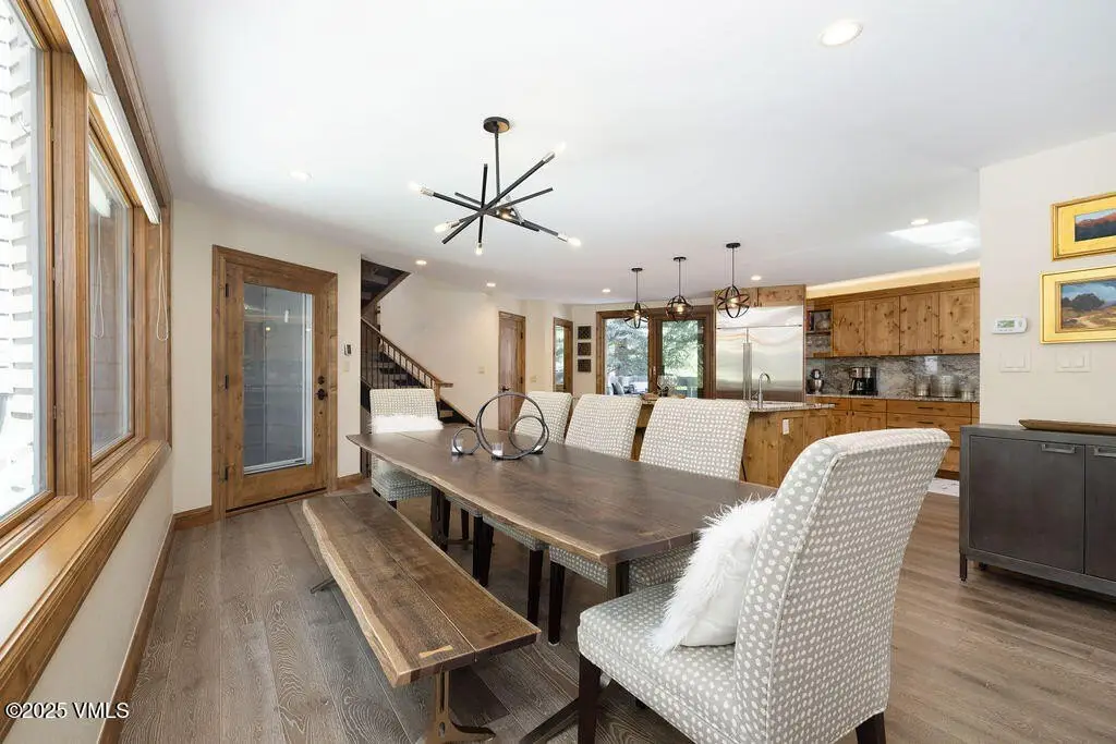 Perched in the coveted Potato Patch neighborhood, this beautifully appointed 5-bedroom, 4-bathroom duplex offers the perfect blend of luxury, privacy, and mountain views. With a spacious open floor plan designed for entertaining and everyday comfort, this home checks all the boxes for mountain living—without compromising on modern touches. Step inside to discover European wood flooring, radiant in-floor heating, and air conditioning throughout, ensuring year-round comfort no matter the season. The light-filled living area flows seamlessly into a gourmet kitchen. Downstairs, a cozy family room/game room with a full bar offering plenty of space for relaxing and entertaining. The home comes fully furnished, so you can settle in immediately and start enjoying the peace and privacy of this tucked-away location. A generous 2-car garage provides ample room for gear, bikes, and vehicles, and the home's thoughtful design makes it an ideal basecamp for both winter adventures and summer mountain escapes. Whether you're soaking in the views with your morning coffee or cozying up by the fire in the evening, this property delivers that quintessential Vail Valley lifestyle, with a touch of alpine elegance that is only 2.5 miles away from world class skiing on Vail Mountain.