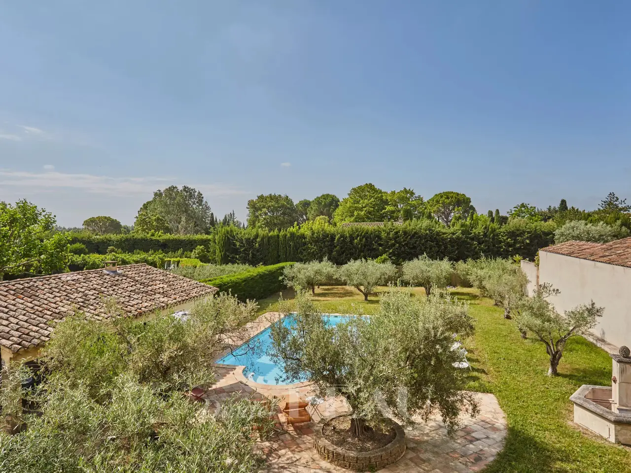 This 224 sqm property dating from 1990 is at the bottom of a peaceful cul-de-sac just a stone’s throw from the shops. It includes a spacious living/reception room and dining room with a stone fireplace opening onto a shady fully south-facing terrace, a kitchen with a fully fitted pantry, a near 35 sqm conservatory with a dining room, and a master suite with a bathroom and dressing room. The upper floor comprises a second suite with a bathroom and dressing room, and two further bedrooms sharing a bathroom. The enclosed garden features an 11 x 5.50 metre swimming pool with a pool house, a fountain and a vegetable plot. With parking space for several vehicles, as well as a carport. Extension would be possible.