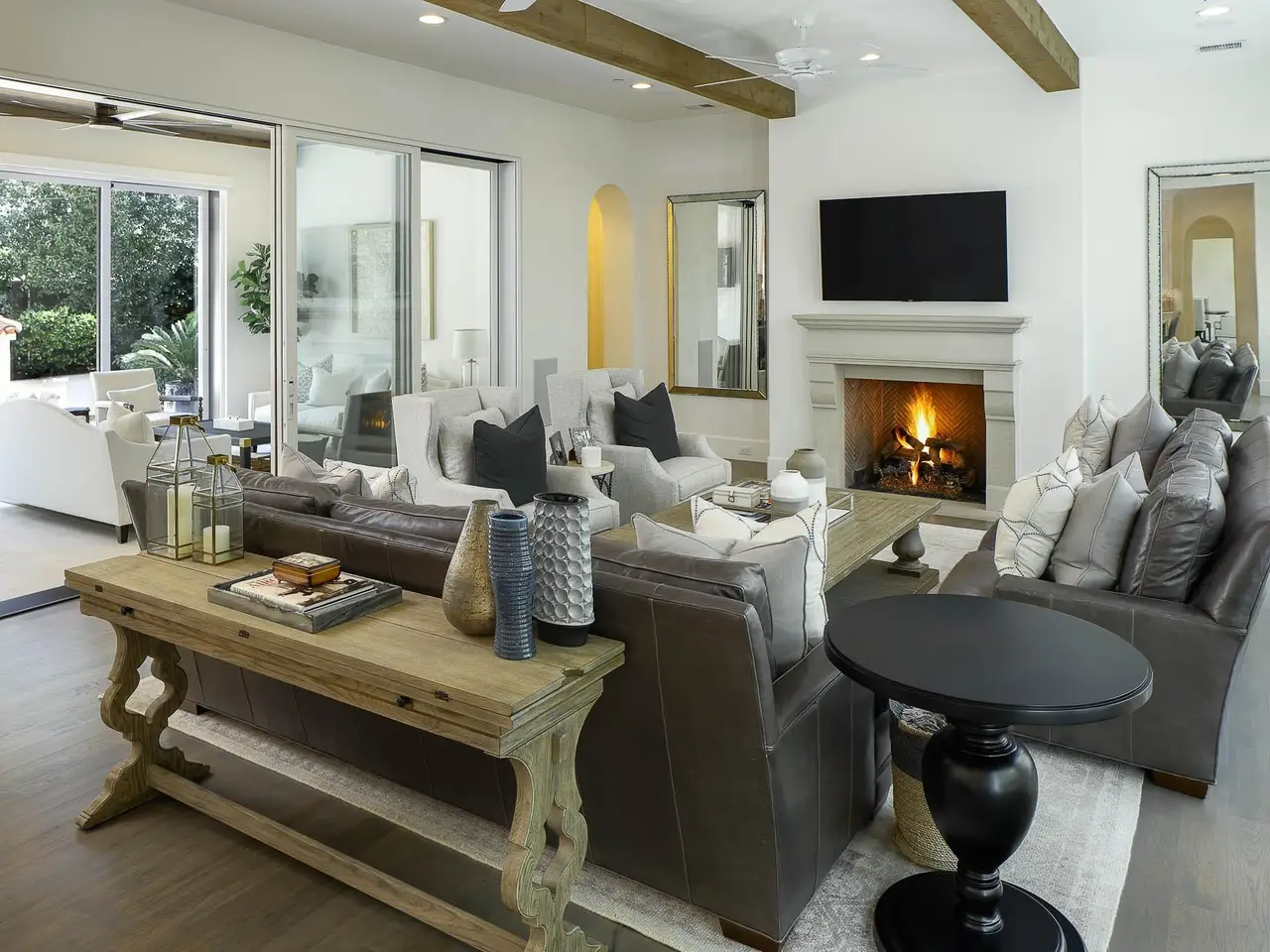 Downstairs primary suite with fireplace