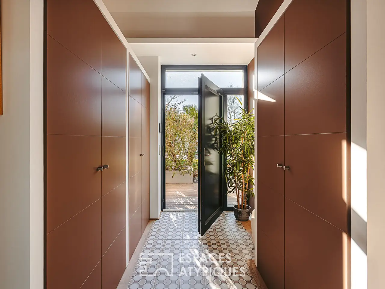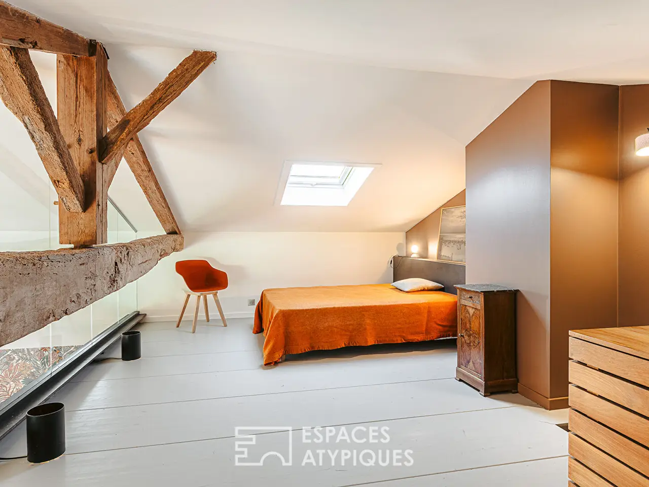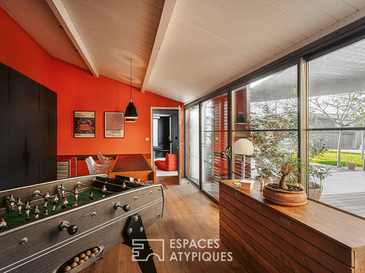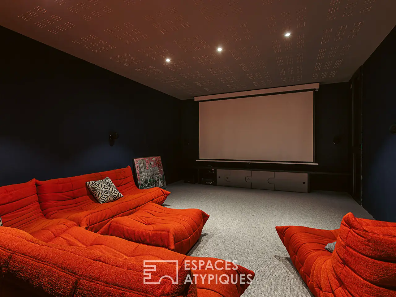 Located in a village between La Rochelle and Chatelaillon-Plage, this old barn, entirely on one level, is the result of an exceptional renovation offering volume, light, noble materials and taut lines. Unsuspected from the street, the building and its vast garden are perfectly sheltered from prying eyes, thus offering a calm and serene living environment less than 5 kilometers from the ocean. The gate and the electric gate open onto a plot of more than 950 m2. Facing south, the old building faces its garden planted with many cypresses, birches, olive trees and oleanders. To enjoy it, this landscape is enhanced by a large Ipe terrace, and a heated swimming pool. From the garden, the architecture of the house is perfectly readable: the old building has been extended by a contemporary extension in order to form an L facing the exteriors, thus forming an enclosure. Accessible from the terrace, the entrance to the house has many custom-made cupboards, in keeping with the cement tiles. It then opens onto the living room with solid parquet flooring. Its XXL volume is highlighted by its high beams, its long sliding bay window and its recesses allowing the spaces to be designed. The large table benefits from the view of the garden. The open kitchen offers a cleverly designed space with high-end equipment. The living room, meanwhile, nestles next to the fireplace integrated into the cupboards dressed with wooden doors. Just above the latter, a glass mezzanine allows you to observe the living room from above, while offering a fifth spare bedroom. As an extension of the living room, a large office of approximately 20 m2 forms the first room of the contemporary extension. This also faces the garden and the large terrace. It is then a cinema room that completes the living rooms. Back at the entrance, a hallway decorated with polished concrete and woodwork leads to the sleeping area with four bedrooms. The first three are designed identically with a custom-made wardrobe and desk facing the bed. These bedrooms share a family bathroom. Finally, the Master bedroom benefits from a larger volume with high beams crossing the space, private bathroom and wardrobe. The house is completed by a boiler room, two toilets, and a storeroom. In the garden, a parking area on the plot completes the garage of approximately 30 m2. Ideally located in the town, all amenities are within walking distance. Easy to access by bike, Chatelaillon beach and its covered market are only 5 kilometers away. For La Rochelle, which is approximately 10 kilometers away, allow 15 minutes by car. A charming house with impeccable design and finishes. ENERGY CLASS: C / CLIMATE CLASS: A. Estimated average amount of annual energy expenditure for standard use, established from energy prices for the years 2021, 2022 and 2023: between EUR2,220 and EUR3,070. REF. EALR1906 Additional information * 9 rooms * 5 bedrooms * 2 shower rooms * Outdoor space : 950 SQM * Parking : 4 parking spaces * Property tax : 2 214 € Energy Performance Certificate Primary energy consumption c : 134 kWh/m2.an High performance housing