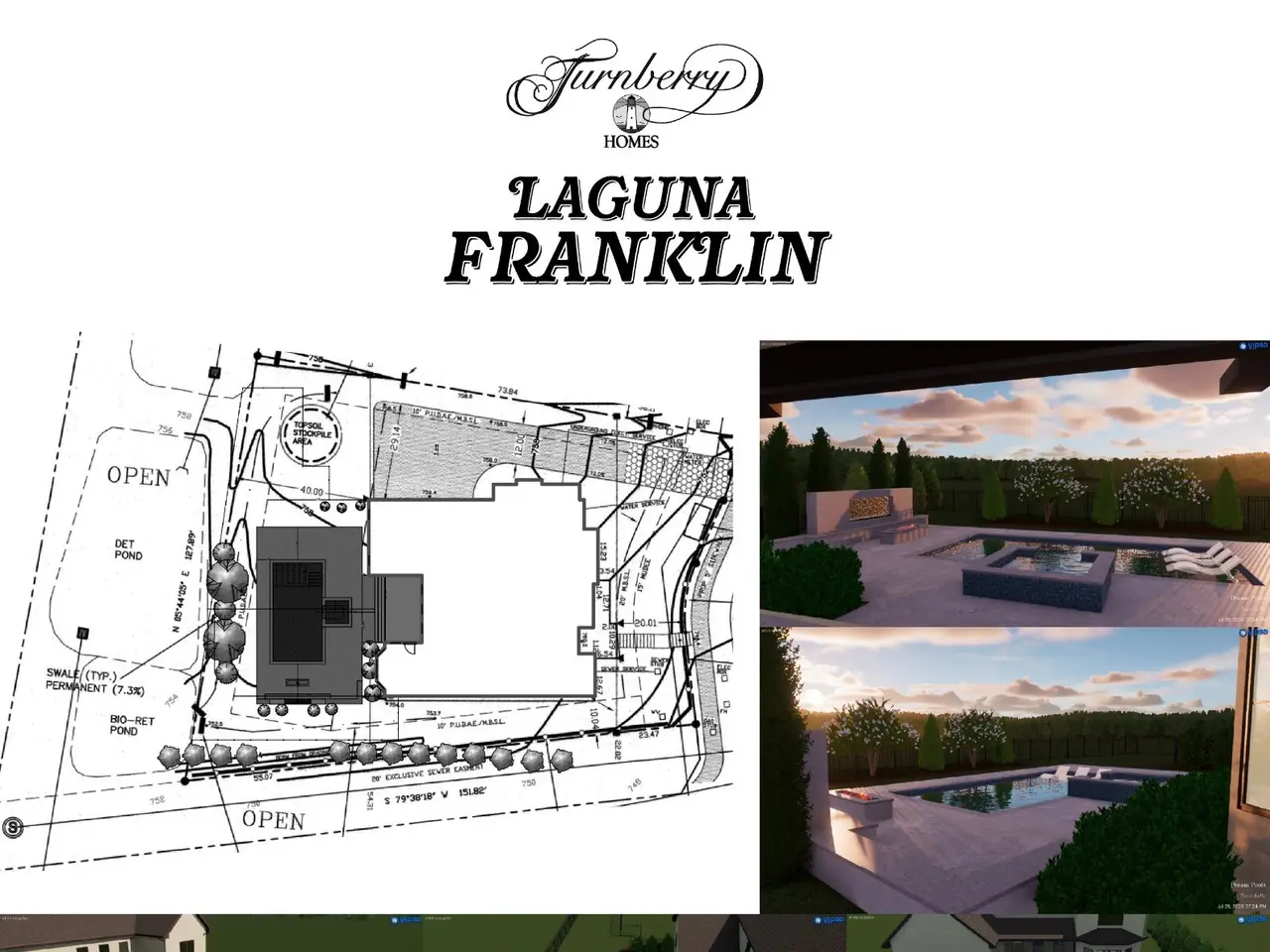 This is your rare opportunity to own a masterpiece in such a desirable location-easy access to shopping, restaurants, medical facilities & I-65. Discover Laguna-an intimate enclave w/only 5 exclusive homesites by award-winning Turnberry Homes. Step into the breathtaking Sunderland II, a stunning 5-bedroom home designed for both stateliness and comfort. From the moment you enter the soaring 2-story foyer, you'll be captivated by the towering ceilings, intricate moldings, and a sweeping staircase bathed in natural light. Main-Level Luxury & Functionality: Private Home Office for work or study, Expansive Kitchen seamlessly flowing into the Family Room--perfect for gatherings, Butler's Pantry & Walk-in Pantry for effortless entertaining, Front & Rear Staircases for convenience and elegance, Primary & Guest Suites on the main level for multi-generational living, Spa-Like Primary Bath with separate vanities & walk-in closets. Upper-Level Comfort & Extra Spacious Bonus Room for relaxation or entertainment, Generous Walk-in Storage for easy organization, Three-Car Garage for ample parking & storage, Every detail has been designed with luxury and convenience in mind, from full sod and irrigation to the incredible included features that set this home apart from the rest. Don't miss your chance to own a piece of Laguna's finest. Imagine Your Dream Backyard Oasis - Preliminary pool designs for 1001 Laguna Drive have already been developed to showcase the potential for an incredible outdoor living space. A local pool contractor, Dream Pools, has created sample plans tailored to the property--giving future homeowners a clear vision of how a custom pool could enhance the backyard. While the pool & incredible outdoor living space is not included with the homes purchase price, interested buyers are welcome to explore the possibilities directly w/Dream Pools-they will work with you to finalize design, pricing, & installation details to bring your personal backyard retreat to life.