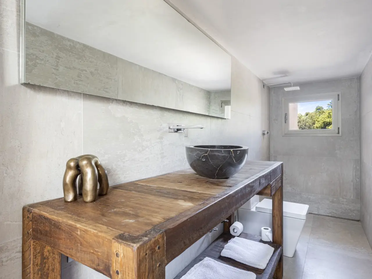This currently three-bedroom villa is located in Sa Coma, approximately fifteen minutes drive from Palma. It offers breathtaking views of the Tramuntana mountains and the Bay of Palma. Most of the work has already been done, now the final design can be done, giving the future owner the opportunity to finish it to his liking. The villa has a living area of 338 m2 and includes an open-plan living room with dining area and kitchen, three bedrooms, two bathrooms and several additional rooms such as a large and bright art studio. The basement is currently converted into a cozy apartment with an open kitchen, one bedroom and access to the pool and the beautiful terrace with sea and mountain views. The property also has a garage and a roof terrace.