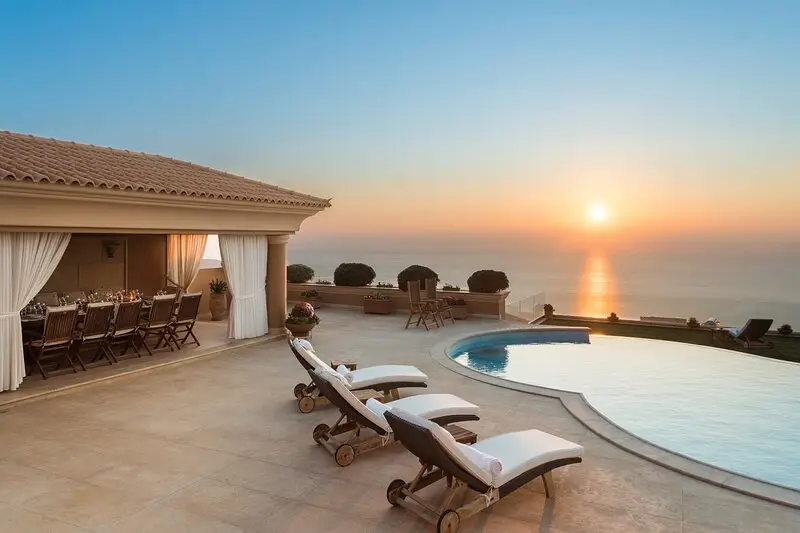 Peacefully located in Saronida Panorama residential area, overlooking the Aegean sea and the islets of the Athenian Riviera, this unique property is one of the most predominant Villas in Athens. The villa of 1.390m2 total area built in 1.250 square meters, can comfortably host up to 16 guests in its 8 luxurious bedrooms, all of which possess ensuited bathrooms. The construction, decoration and all amenities provided are the highest standard. Private, fully equipped gym with the hammam provides a perfect addition to this extraordinary property, which is fully serviced 24/7 by two members of staff. (The staff stays in the villa in independent bedroom (staff room). The Villa lies on four floors, offering comfort, luxury and quality of living, with attention to every detail. All spaces are accessible by elevator Main Entrance (1st Floor): Living room & TV lounge Guest bathroom, balcony with fantastic sea views Upper Floor: Master bedroom with ensuite bathroom, Queen Bedroom with ensuite bathroom & Jacuzzi and spacious dressing room, privately accessed kids' room with independent living room space & dressing room. Ground Floor (Pool Level): Living room, Dining room, Kitchen Guest bathroom, Master bedroom with ensuite bathroom. Lower Floor: Queen bedroom with ensuite bathroom, 2 Queen bedrooms with ensuite bathrooms and a privately accessed yard (one with a Jacuzzi in the bathroom), State of the art Cava with unique spirits. Outdoors & more Independent guest house: master bedroom, ensuite bathroom & lounge Infinity pool, sunbeds, shower cabin BBQ Spacious outdoor living room, perfect for alfresco meals Fully equipped gym with hammam Underground parking garage Number of Bedrooms (8): 3 Kings, 5 Queens Number of Bathrooms: 1 Half bath, 2 Full baths, 7 Showers