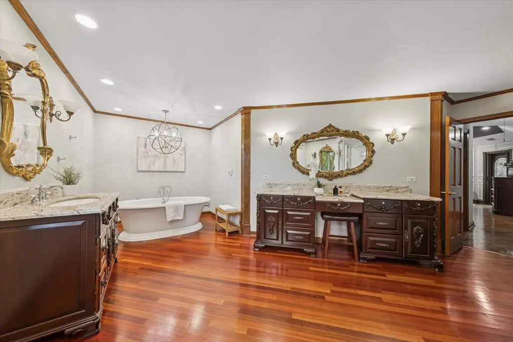 An exceptional opportunity on one of Lemont's most beautiful and private enclaves. Nestled on a sprawling almost 2 acres, this custom estate offers unmatched privacy and elegance -perfectly positioned just minutes from charming downtown Lemont, top-rated schools, golf courses, and easy expressway access. Behind a private gated entry, this impressive residence boasts timeless architectural design with 6 beds and 5.2 baths, soaring ceilings, and sun-drenched living spaces. The expansive main level features a grand foyer, formal dining room, chef's kitchen with high-end appliances, a view of a gorgeous pond, and a dramatic great room with light filled windows overlooking the serene grounds. The luxurious primary suite is a true retreat with an amazing balcony recently redone with new tile. A finished lower level offers incredible high ceilings, a full kitchen, billiards room, and theater style recreation room, plus an additional bedroom and huge office space. Outside, enjoy professionally landscaped grounds with mature trees and hedges, multiple patios, and a brand-new landscaped pool and yard that takes the stately grounds to the next level. The main level includes an in-law suite complete with kitchen, en suite bath, and separate living room and entrance.