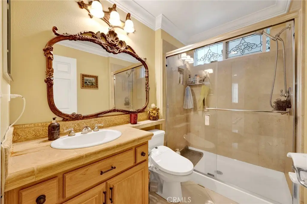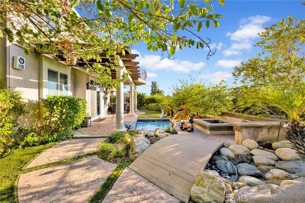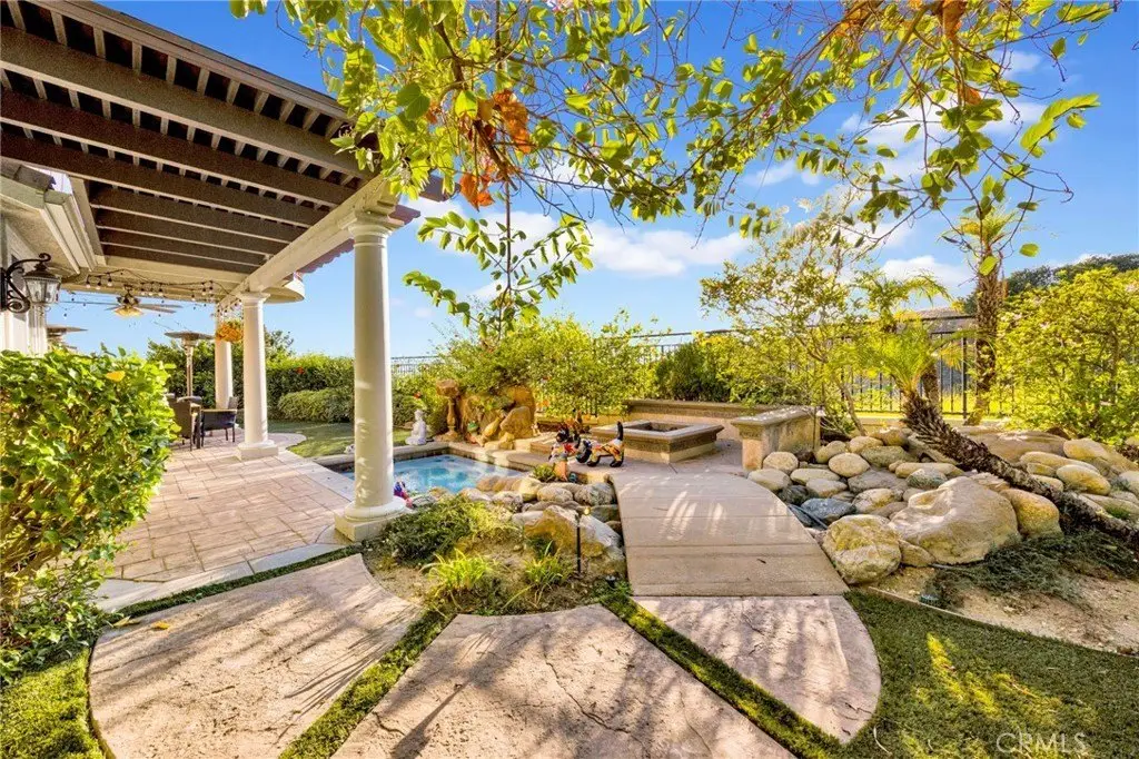 Unrivaled Views – Sorrento Living at Its Finest. DO THE COMPARISON! Unmatched value in the exclusive, guard-gated Sorrento community of Porter Ranch with sweeping city views. Elegant two story home, manicured landscaping and a serene sunset backdrop. 2,709 square feet of elegant & bright living space featuring striking curved staircase with wooden banister. The two story foyer highlights the beautiful chandelier and tiled flooring with decorative inlays. The walls are painted a warm, light yellow, complemented by custom white crown moldings. Adjacent to the living room is the dining section and a family room that seamlessly flows into a gourmet kitchen with granite counter tops, light wood cabinetry, large center island, custom backsplash and built in appliances like fridge, stainless steel double oven, cooktop, and dishwasher. Abundance of windows plus sliding door leads to the backyard from the family room to a resort backyard + paved patio area under a pergola supported by columns. An inviting spa among decorative rocks and unbelievable sunsets! First floor includes 1 bedroom, 1 full bathroom and a separate room for laundry adjacent to a direct access three car garage. Ascend to the second floor and you will find 5 bedrooms and 2 bathrooms. Spacious second floor landing is bathed in natural light from well placed high custom windows, natural toned carpet and expansive transition to the bedrooms and the private primary suite. 3 spacious bedrooms and a primary bedroom. The primary suite is the highlight of this home, the major highlight is the direct access to the private terrace with views of the hills and city. Views all the way to Santa Monica mountains, Santa Susana mountain, and the entire the valley. The primary en suite bathroom features tiled walk in shower and deep soaking tub with a perfect window placement to absorb in all the views. The dual sink vanity with ample counter space highlighted by two ornate, matching mirrors and stylish sconce lighting. Also not to forget the generous walk in closet ensuring a high end primary suite experience. Additional property feature includes solar panels. The home is in a desirable 24-hour guard-gated community with a TWO community pool/spa with low HOA dues of $305 per month. Come experience the difference in Porter Ranch.