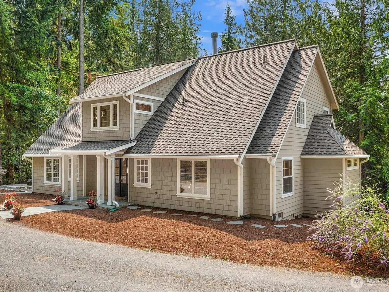 Tucked away on 5 serene acres along Vashon's west side, this retreat-like home blends elegance w/ privacy. Enjoy the sun-filled LR where madrone floors, a cozy fireplace,& soaring vaulted ceilings create a warm, welcoming ambiance. A hidden door reveals the primary suite w/ dual walk-ins, tiled bathroom & FR doors to the deck. A kitchen designed for both beauty & function, showcasing quartz counters, custom cabinetry, & premium appliances including a Liebherr fridge & Bertazzoni range. Upstairs boasts spacious bedrooms, a bonus room & full bath. Radiant floor heating runs throughout for comfort in every season. A 2-car garage & EV charging completes this peaceful island sanctuary--an inspiring place to live, entertain & recharge.
