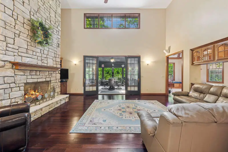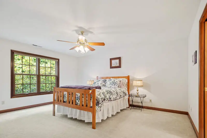 Discover this stunning one-owner home located in the prestigious Whitethorne Woods gated neighborhood. Nestled on a private, wooded cul-de-sac lot, this exceptional property offers over 8,000 square feet of luxury living space. The main floor features a spacious primary suite complete with his and hers walk-in closets, dual vanities, and a beautifully updated en-suite bath with a classic clawfoot tub, heated floors and heated towel racks. The heart of the home is a well-appointed eat-in kitchen, with two dishwashers, perfect for casual dining and entertaining. Designed with both comfort and functionality in mind, the home includes 5 bedrooms--each with its own en-suite bathroom--6 total baths, 2 fireplaces, and a finished basement featuring a workout room, dog wash station, custom pull-out shelving for easy storage, and an office that can be converted into a sixth bedroom. Outdoor living is made easy with a screened-in porch off the family room as well as access of the master suite and deck. Outside across a beautiful stone bridge is a fully screened in gazebo equipped with an electric lift, offering peaceful views and year-round enjoyment. Additional features include a 3-car garage, whole-house generator, double septic tanks, and a 3-year-old roof. Meticulously maintained and thoughtfully designed, this luxury home offers space, privacy, and elegance in one of the area's most sought-after communities.