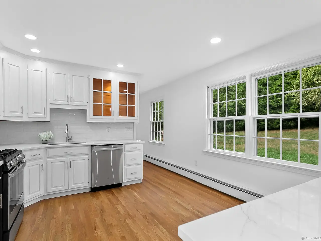A picturesque, expanded and impeccably renovated Cape Cod home located in highly desirable Southport (set off far from road) awaits. Welcome home to 478 Hulls Highway where the character of this Cape blends with today's must have updates. This sun-drenched home features two levels of living, 8 spacious rooms including 3 bedrooms and 2.5 beautifully renovated baths. A rare main level primary suite adds to the convenience and appeal of this special property. Set on an expansive 1.0 acre lot this home has been meticulously updated throughout. Recent home improvements include: all new bathrooms with high-end finishes, renovated eat-in kitchen with new Quartz countertops, new appliances, new backsplash and painted cabinetry, entire interior has been freshly painted, new lighting and hardware throughout, striking new granite hearth fireplace, new central air system, updated plumbing fixtures and a newly paved driveway. The open and flexible floor plan allows for comfortable everyday living & effortless entertaining. Unfinished lower level is ideal for great storage or future home expansion with 864 sf. Attached two car garage provides easy entry into home. Flooded with natural light and filled with charm this home truly has it all. Step outside to a private and peaceful backyard with patio and great space to unwind or host guests. Ideally located and just minutes to Southport Village, beaches, the harbor, top-rated schools and train access - everything you need is at your doorstep! Highest and Best by 10/12/2025 at 6:00 pm. Thank you.