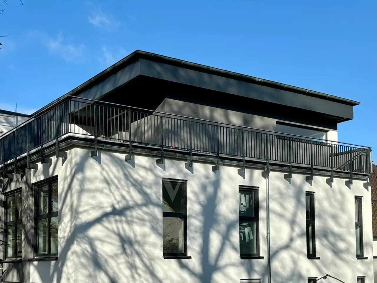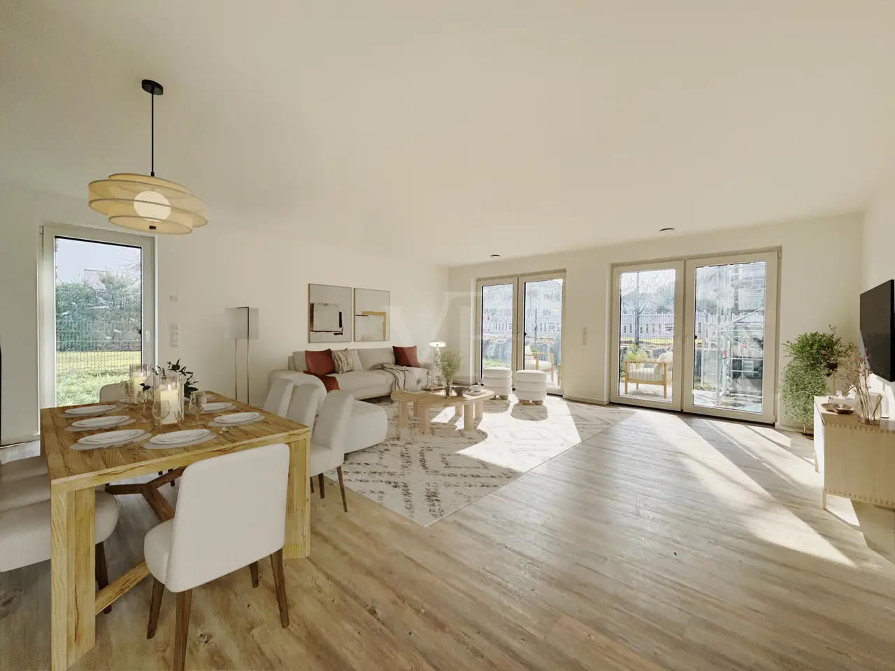 A modern semi-detached house is for sale, which impresses with its contemporary design and upscale furnishings. Built in 2024, the property is in new condition and promises a high level of living comfort in an attractive environment. The living space of approx. 200.56 m² extends over three floors and offers space for the whole family. Situated on a plot of around 256.47 m², the house comprises a total of five rooms, including three bedrooms and a spacious bathroom. In addition, a separate kitchen completes the room layout and offers enough space for culinary activities. The kitchen is functionally designed so that all work processes can be optimally organized. A modern central heating system in combination with an air heat pump ensures a pleasant living climate. The underfloor heating, which is installed in all living areas, ensures cozy warmth and a pleasant living atmosphere. The furnishings in the house are of exquisite quality. The large-format tiles and wood-look vinyl flooring are particularly noteworthy, creating a harmonious combination of classic design and modern accents. One of the highlights of this property are the floor-to-ceiling windows, which give the rooms plenty of light and an open atmosphere. In addition, all windows are fitted with electric shutters that can be conveniently controlled for added comfort. The large roof terrace offers an appealing outdoor retreat. A green flat roof contributes to the environmental friendliness of the house and supports the sustainable construction method. Two parking spaces are available for your vehicles, offering convenient parking options. This semi-detached house impresses with its well thought-out design and the use of high-quality materials. The solid staircase blends seamlessly into the overall picture and underlines the durability of the construction method. An elevator can be added on request. The building services and building design are state-of-the-art, which not only ensures efficiency but also high energy savings. If you are looking for a modern home that meets all the requirements of contemporary living, you should consider this property.