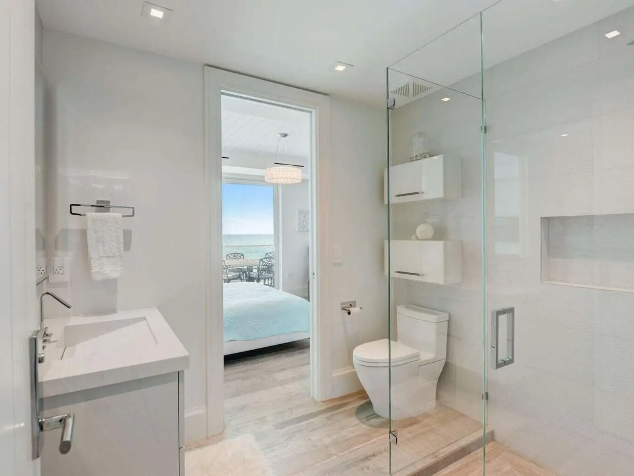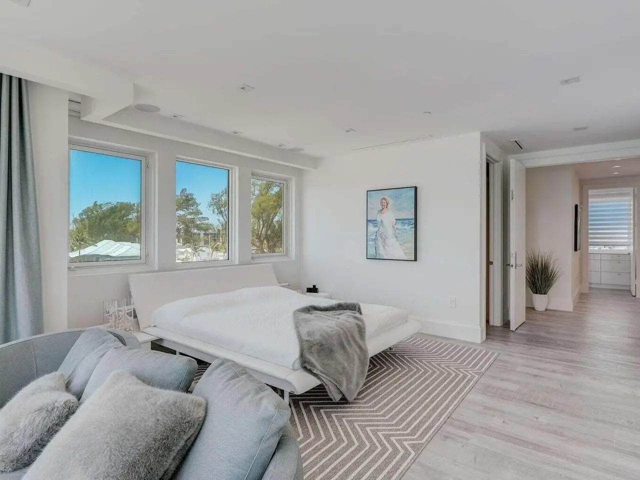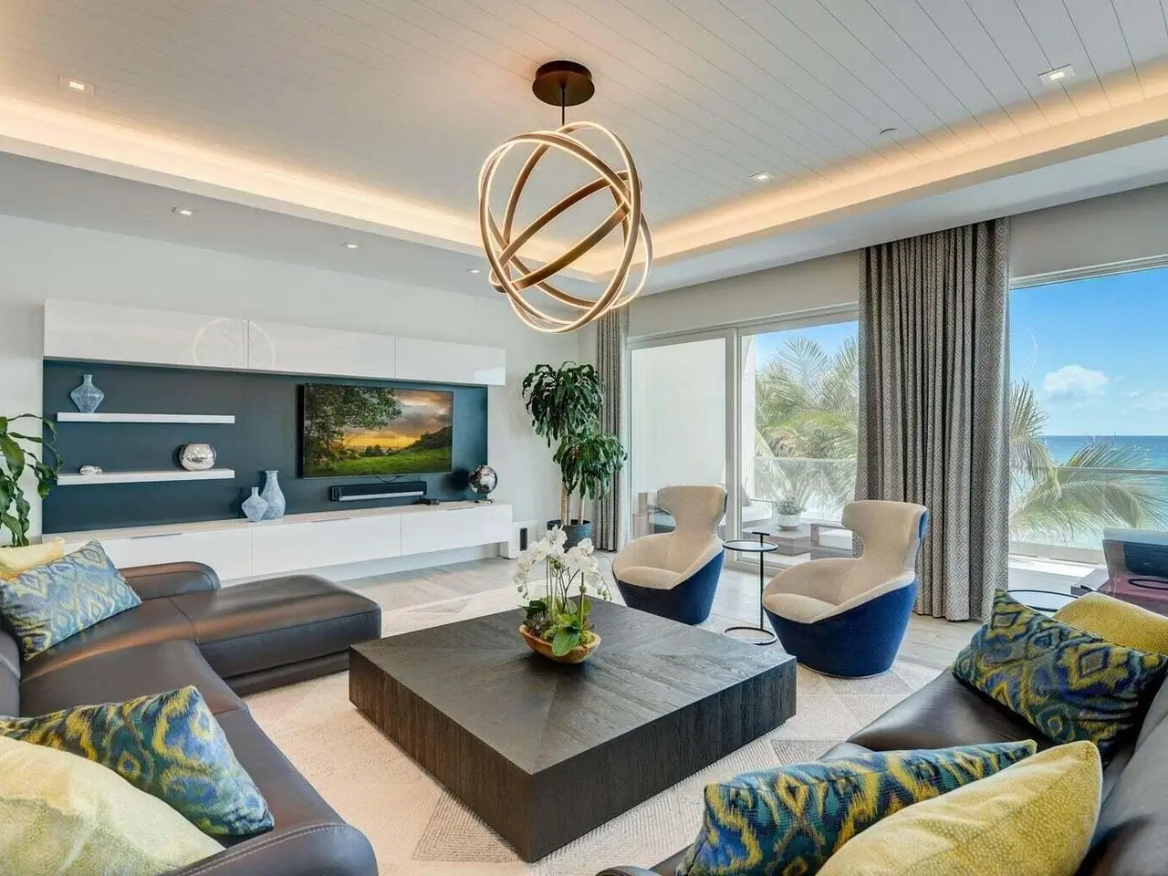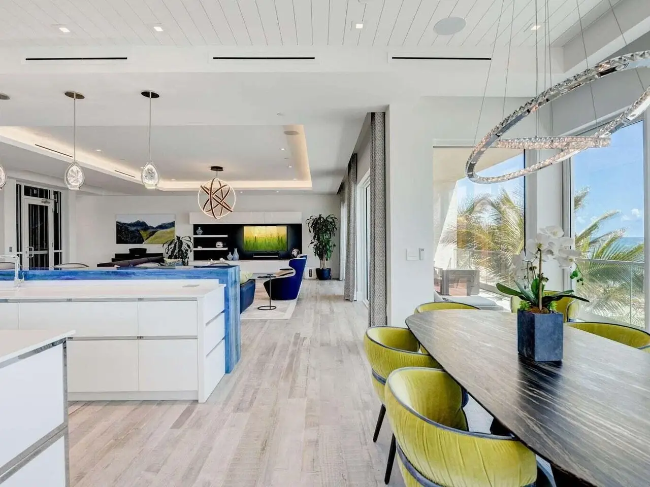 Ocean Ridge townhome, perched directly on the sand, showcases a sunny deck and an expansive wraparound balcony perfect for catching the sunrise. Designed with a sophisticated beach-chic flair, every room frames sweeping views of golden coastline and shimmering aquamarine waters. The main level boasts a light-filled open-concept living space. Downstairs rooms make ideal guest retreats, while the top-level primary suite, with its panoramic oceanfront perch, sits in the sunny southeast corner.
