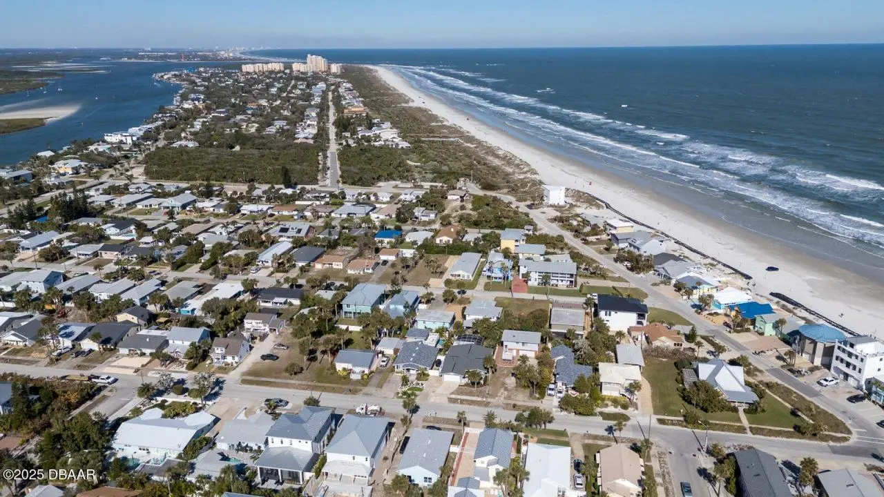 Location, location, location! Discover coastal living at its finest in this immaculate 3BR/2.5BA, 2 CAR GAR home, perfectly located just 5 houses from the beach & only 8 blocks to vibrant Flagler Avenue shops & restaurants. Drive your golf cart, ride your bike or walk to the beach access only 1 block away! Beautifully maintained modern home has an open floorplan with high vaulted ceilings & an inviting atmosphere for entertaining or relaxing. Built in 1998, one of the spacious bedrooms is downstairs & is large enough to be a master BR. It features wood floors & a gorgeous bath with tiled shower & two vanities. This bedroom has a door to the expansive rear lanai which has a cozy wood ceiling & beautiful tiled floors! Private outdoor shower & fenced back yard add to the desirability of this fabulous home. Upstairs you'll find the master bedroom, a luxurious tiled bath and another spacious bedroom. Upgrades include newer roof & water heater in 2021, newer A/C units & both drywood & subterranean termite bonds. Current tenant will consider staying through end of July. Whether you're seeking a permanent residence or a vacation retreat, this home combines elegance, comfort and an unbeatable location!