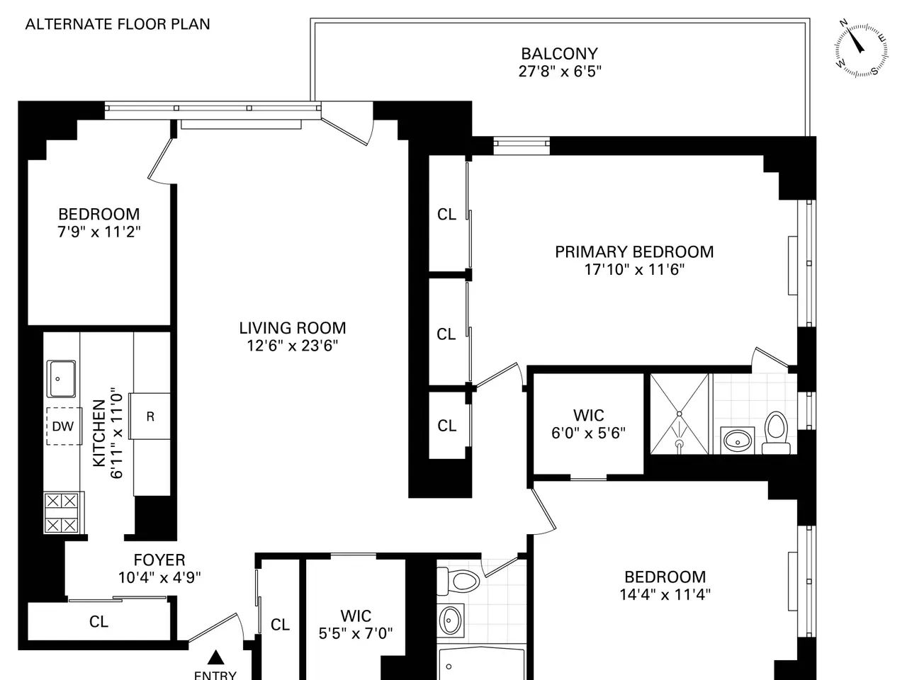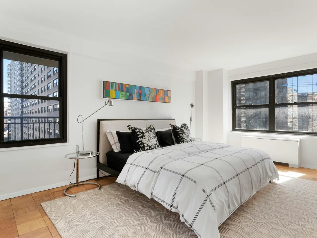 Step into a sun-drenched sanctuary at this generous two-bedroom, two-bathroom co-op on a prime corner of West End Avenue. Beautiful northern light floods the apartment, highlighting the spacious layout and open city views to the north and east. From your expansive 27'6" private balcony, you can sip your morning coffee while enjoying a peek of the Hudson River. Inside, the 23" x 12.5" living room provides the perfect backdrop for entertaining or simply unwinding. The adjacent dining area is large enough to host a dinner party for eight, while the updated kitchen-featuring classic white cabinetry and appliances-offers ample storage. The primary bedroom is a peaceful retreat with dual northern and eastern exposures, a 12" wall of closets, and an en-suite bathroom with a walk-in shower. The second bedroom is versatile and generously sized, ideal for a queen-sized bed or a home office, and includes a large walk-in closet. With six closets in total, including two walk-ins, you'll find a place for everything. In addition to the monthly maintenance there is an ongoing monthly capital contribution of $138.25 for a total monthly payment of $3,277.22 ($3,138.07 maintenance + $138.25 capital contribution). Located in a full-service, 24-hour doorman building, 142 West End Avenue offers residents a private gym, a toddler play area, laundry rooms, and exclusive access to a security-patrolled park with playgrounds, pickle ball and basketball courts and grassy picnic areas. Just moments from Lincoln Center, Riverside Park, and Central Park, this home offers the perfect blend of city convenience and tranquil living.