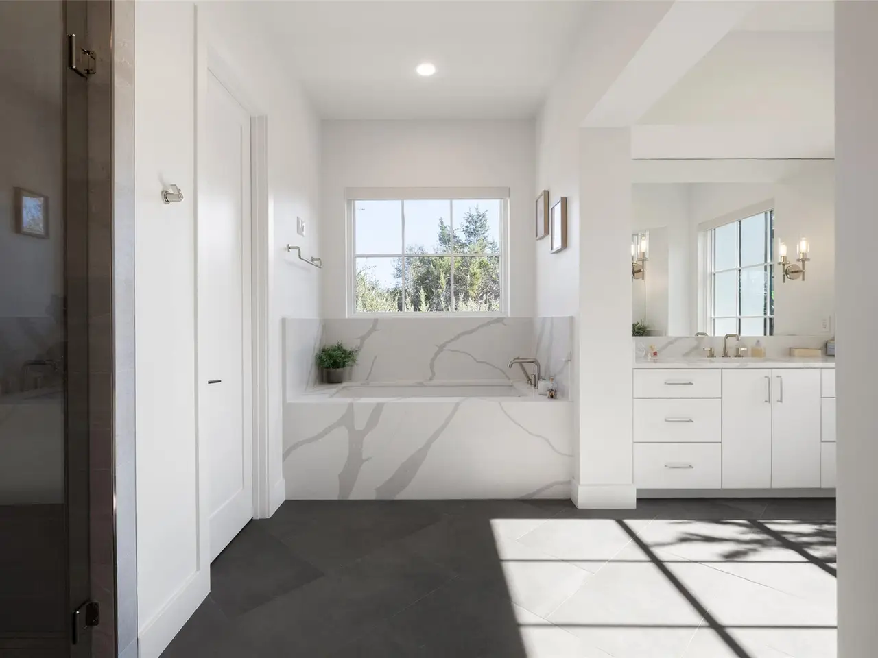 Welcome to 17213 Morning Grove Lane, a beautifully executed single-story custom home built by Eppright Homes in 2023 and situated on a flat, oak-studded lot in the gated community, Madrone Canyon. With thoughtful architecture and timeless Hill Country appeal, this home pairs soft modern finishes with warm natural textures highlighted by wide-plank wood floors, vaulted ceilings with beams, designer lighting, and abundant natural light throughout. An open-concept layout connects the spacious living room, dining area, and gourmet kitchen, where professional-grade appliances and a generous island anchor the heart of the home.Designed for both comfort and flexibility, the home includes four spacious bedrooms each with its own en-suite bath, plus two separate offices, a dedicated pool bath, and a well-appointed four-car garage. The primary suite is a private retreat, featuring serene backyard views, a spa-style bath with a deep soaking tub, oversized walk-in shower, dual vanities, and a beautifully customized closet. Every detail inside has been intentionally selected, from the ambient lighting and wallpaper accents to the automated window shades and bespoke hardware.Out back, a resort-style pool and spa with a negative edge and waterfall feature become the centerpiece of the landscape, surrounded by a large covered patio, raised garden beds, and open lawn shaded by mature oaks. With its calm, elegant style and a layout that blends functionality with ease, 17213 Morning Grove Lane offers refined Hill Country living just minutes from everyday conveniences in both Bee Cave and Lakeway along with top-rated Lake Travis schools.