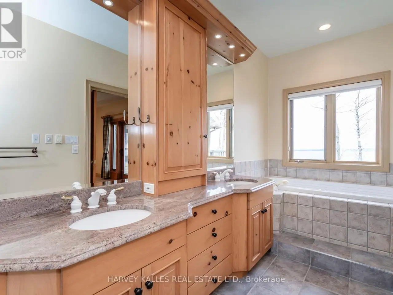 Perched high on a ridge at Cedar Point in the coveted Cedar Ridge community, this home is located just under 2 hours from Toronto. This spectacular residence captures sweeping, panoramic views over the turquoise crystal-clear waters of Georgian Bay with stunning western sunsets. Set on a premium 4-acre lot, this thoughtfully designed home offers unmatched privacy, natural beauty, and a true four-season lifestyle. Crafted for both relaxation and entertaining, this home features an open-concept kitchen, dining and great rooms with soaring vaulted ceilings, an abundance of natural light through oversized windows and skylights, and oak flooring. Warmth and ambience abound with a granite stone wood-burning fireplace in the great room and a cozy propane stove in the sunroom. The wrap-around Western Red Cedar deck and screened porch create a seamless flow between interior and exterior spaces. The private primary suite features a 5-piece ensuite and direct access to its own exterior deck - perfect for quiet mornings with a coffee and unobstructed views of the Bay. The walkout lower level, with in-floor radiant heating and the upper level loft, offer additional living space for family and guests. Located near the well-known Thunder Beach community, Awenda Provincial Park, Lafontaine Beach & the towns of Penetanguishene and Midland. World-class skiing at Blue Mountain and Horseshoe Valley is just 40 minutes away. While nearby golf courses, sailing clubs, skiing clubs, trails, and sandy beaches offer recreation for every season. A rare opportunity to own a four-season retreat in a truly breathtaking setting! (id:6370)