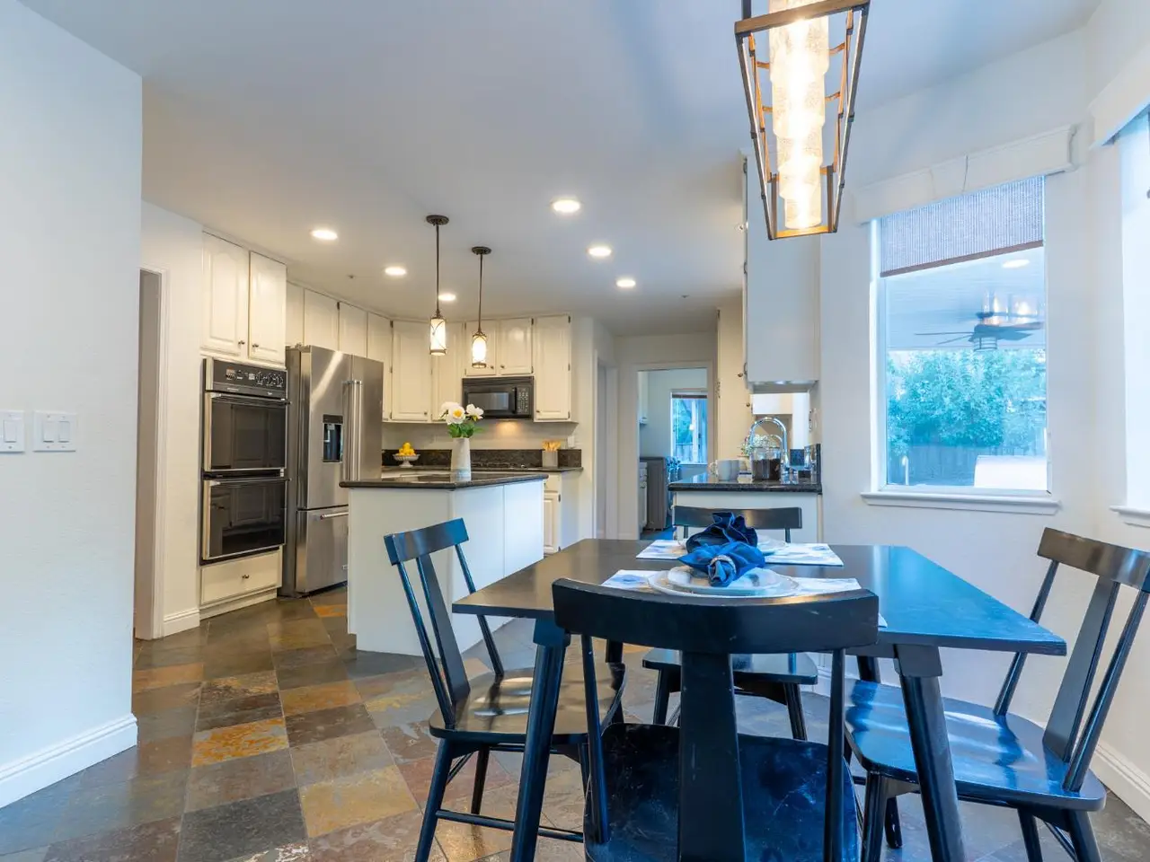 Located in Napa's desirable Browns Valley neighborhood, this spacious 5-bedroom, 3-bathroom home sits on a generous 0.6-acre lot with vineyard and beautiful hillside views. The landscaped front yard and covered porch welcome you into a warm living room featuring hardwood floors, a pitched ceiling, and a cozy fireplace. Just a few steps up, the main level offers a formal dining room, laundry room, and a kitchen that opens to the family room and a covered back patioperfect for indoor-outdoor living. The primary suite is also on the main level and features vaulted ceilings, a walk-in closet, and a luxurious bathroom with a jetted soaking tub, tiled stall shower, and private toilet room. An additional bedroom or office with a full bath completes the main level. Upstairs, you'll find three spacious bedrooms and a full bathroom with dual sinks and shower over tub. The backyard is an entertainer's paradise with a built-in BBQ, covered patio, gardens, fruit trees, chickencoop, and a lovely Gazebo up above, along with approximately 1,000 Cabernet vines ideal for a hobby vineyard with stunning views of the hills. A 3-car garage with extra storage along the back wall completes the property. This exceptional home blends comfort, functionality, and a true Napa Valley lifestyle.