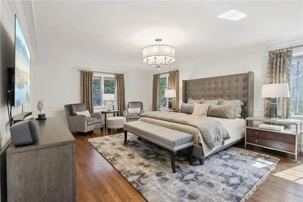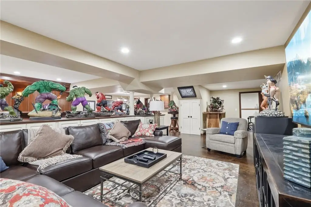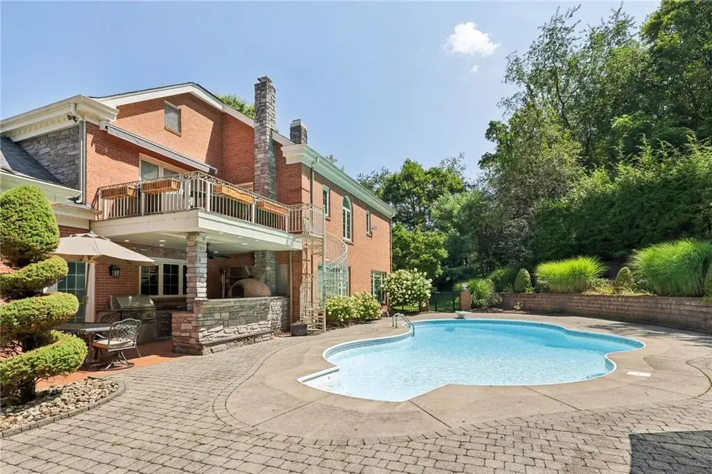 Luxury Living! Spectacular Estate on private road w/1.5acre professionally landscaped grounds. Grand foyer w/leaded glass door, grand staircase,& chandelier. Formal living & dining rooms w/exquisite details fireplace, bay window, hardwood flooring,& built-ins. Executive office w/wood-paneled walls, fireplace, custom cabinetry,& wet bar. Chef's dream kitchen w/Wolfe & Viking appliances, large island w/seating, Miele coffee bar, sliding glass doors to stunning outdoor retreat. Entertain in style w/rear patio w/full outdoor kitchen, woodfired pizza oven, inground pool, multiple seating areas,& tranquil pond w/waterfall. Luxurious owner's suite w/French doors, spa-bath w/soaking tub overlooking pool, oversized shower w/jets, double vanities,& walk-in closet. Updated bath, laundry, & balcony w/lounging area & spiral staircase to pool. Lower level is entertainer's dream w/wine room, full 2nd kitchen, wet bar, built-in seating, game area, media lounge, gym/5th bedroom, & full bath. WOW!