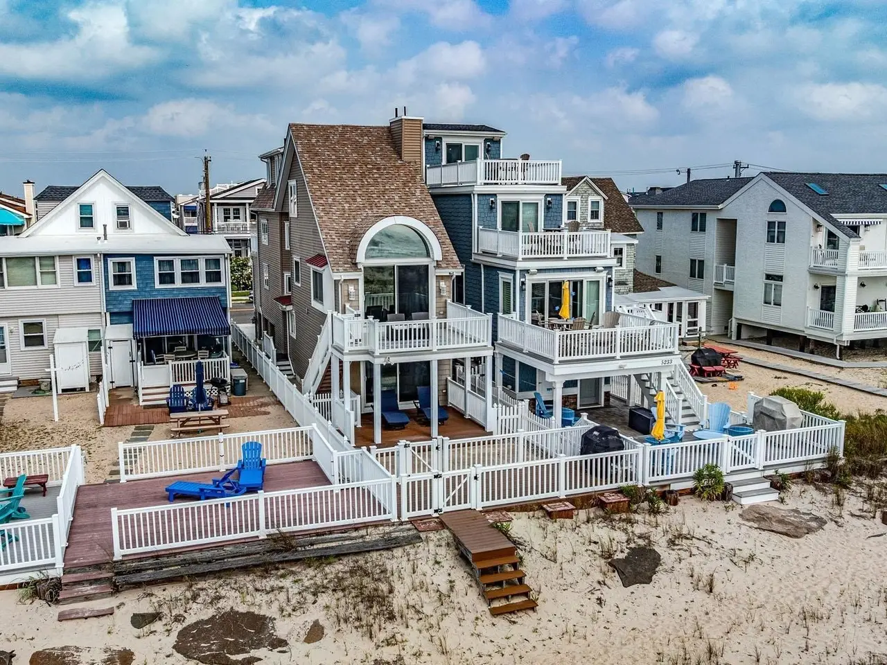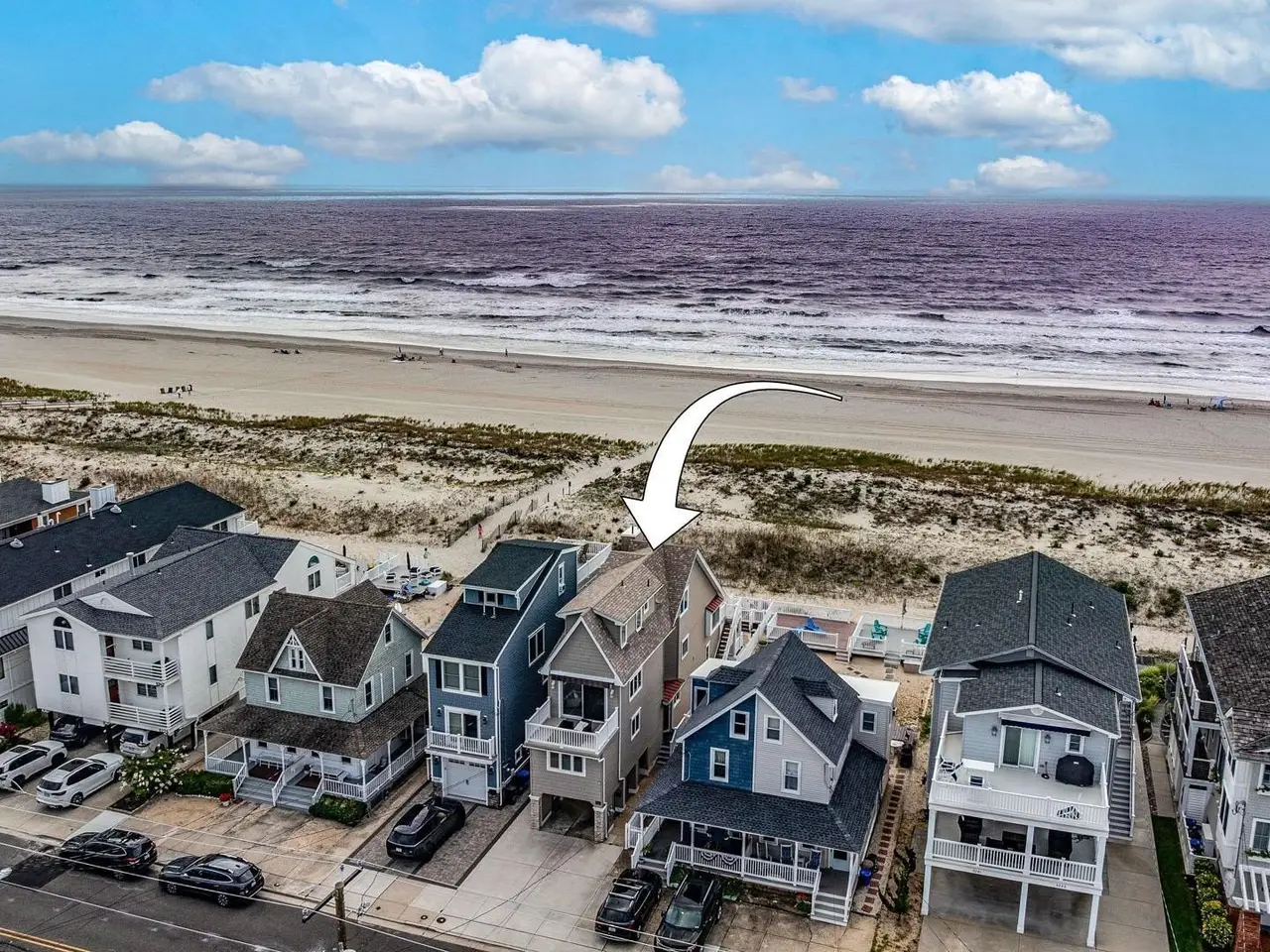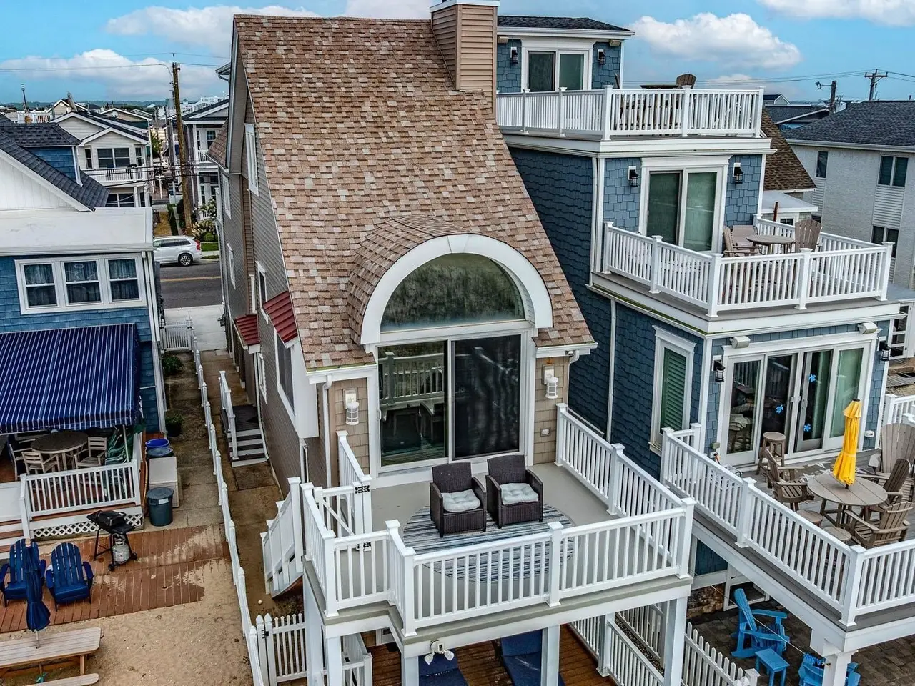 BEACHFRONT BEST BUY! From Brigantine to Cape May you will NOT find a more affordable single-family beachfront home along the South Jersey Shore coastline. Built on a unique 20 x 100-foot lot, this 2,200 square foot home is larger than most four bedroom, three bath condos and captures ocean views from multiple vantage points. Entering in the front door, you're greeted with the option of going up the steps or making a right into the ground floor bedroom complete with a full bath, that can be used as the primary bedroom if desired. Just off that bedroom is a covered deck. A few short steps up take you to another full bath that also services two more spacious bedrooms and some hall storage. Going up the stairs to the next level is the well-appointed kitchen with a cathedral ceiling, counter seating and an eat-in dining area. Step out onto the sweeping rear deck for panoramic ocean views during the day and star-gazing at night while enjoying the lights of the coastline. Up to the left is the sizable Living Room large enough to fit the whole family; featuring a big flat screen TV with Sonos Audio Technology, enough space to also include a sitting area with ocean views and complete with an expansive front deck great for happy hour as the sun sets, and covered by a retractable awning. The entire top floor hosts the Master Bedroom with an ensuite bathroom and multiple closets, including a walk-in closet. The split-level design utilizes all the space and gives this Beach House a comfortable flow while taking advantage of all the views and outdoor spaces that make Shore Living your Peace of Paradise. The ground floor area boasts parking for three cars, an oversized storage room, enclosed outside shower, outdoor staircase leading up to rear deck, patio-paver area for sunbathing and an elevated deck over the bulkhead for additional outdoor space when entertaining. This is your chance to buy that Beachfront Oasis in the South-end of Ocean City NJ. Easy to show. Call today for your private showing.